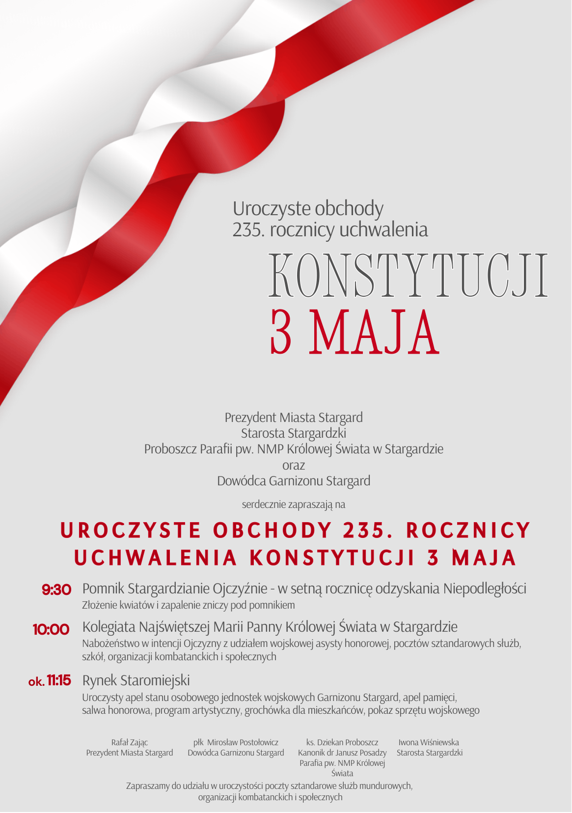 - W dniu 3 maja modlitwa za Ojczyznę w Kolegiacie. Bogaty program uroczystości miejskich dostępny jest na plakatach.