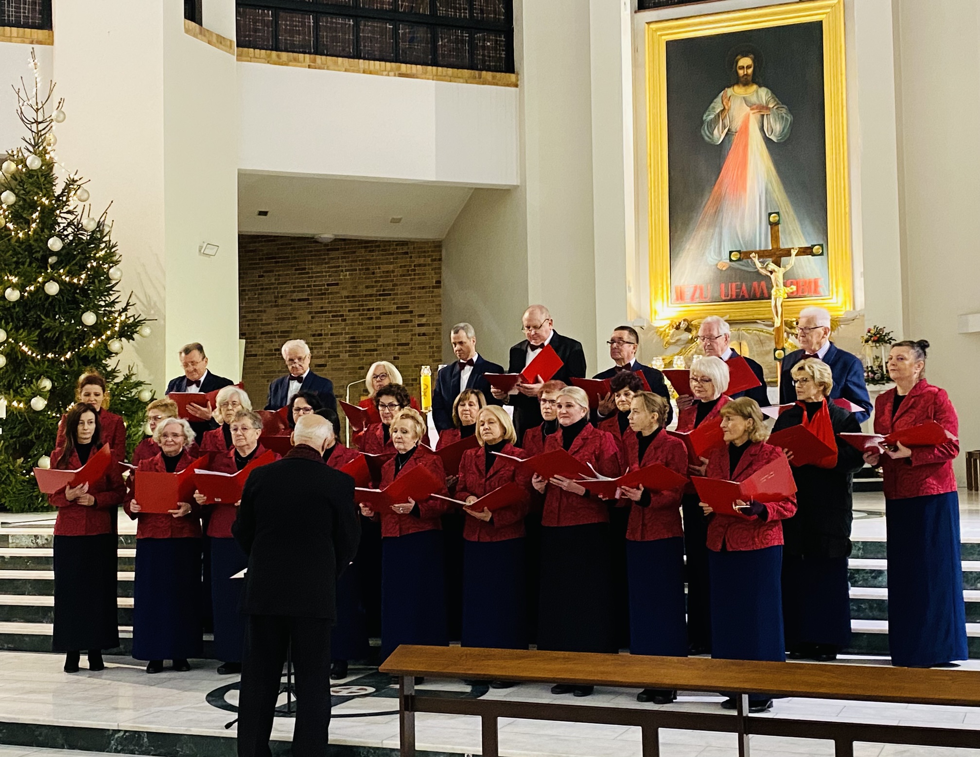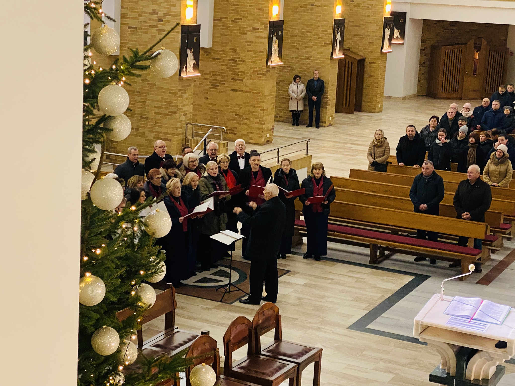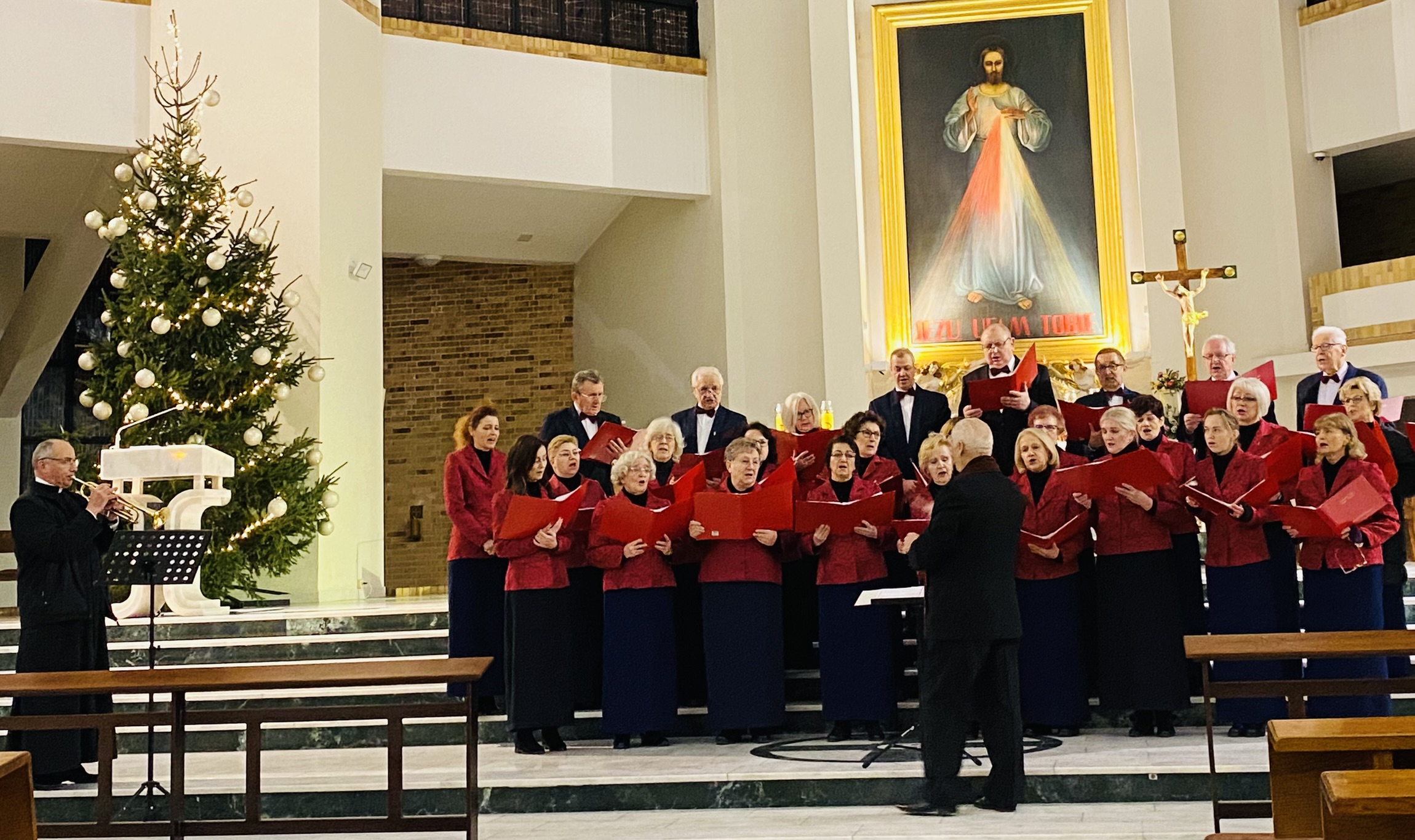 Podczas liturgii posługę organisty pełnił miejscowy maestro Roman Kot, a w koncert włączył się ks. Proboszcz grą na trąbce i słowem wprowadzającym w charakter świątecznych pieśni. Dziękujemy serdecznie za rozpoczęcie tegorocznego kolędowania w naszej świątyni parafialnej i czekając na kolejne muzyczne spotkania życzymy sił i wytrwałości w nadawaniu nutom słodkiego brzmienia, które za każdym razem tak bardzo poruszają nuty naszych ludzkich serc.