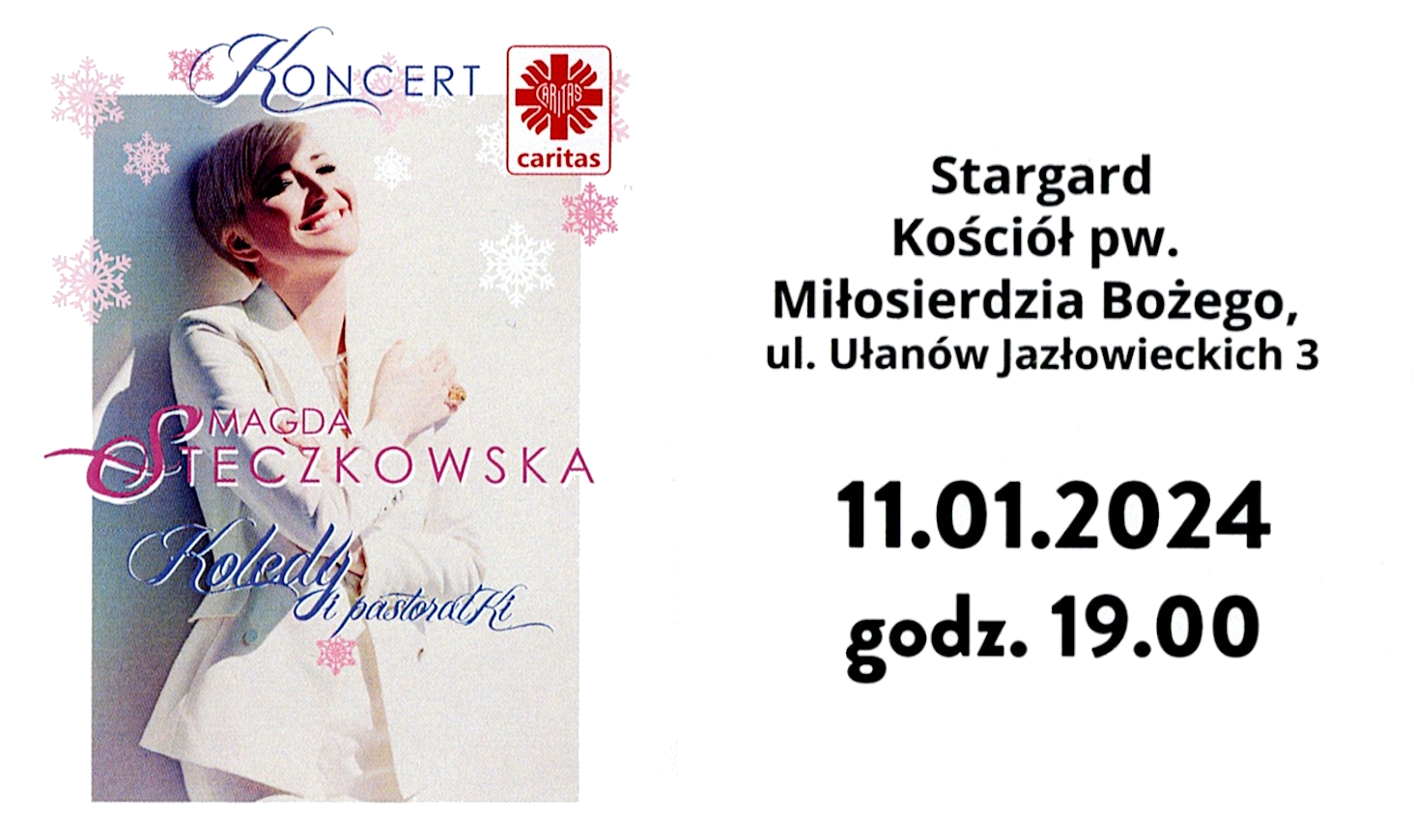 Caritas Archidiecezji Szczecińsko - Kamieńskiej zaprasza na Koncert Kolęd i Pastorałek w wykonaniu Magdy Steczkowskiej 11/01/2024 godz. 19:00 Parafia Miłosierdzia [...]