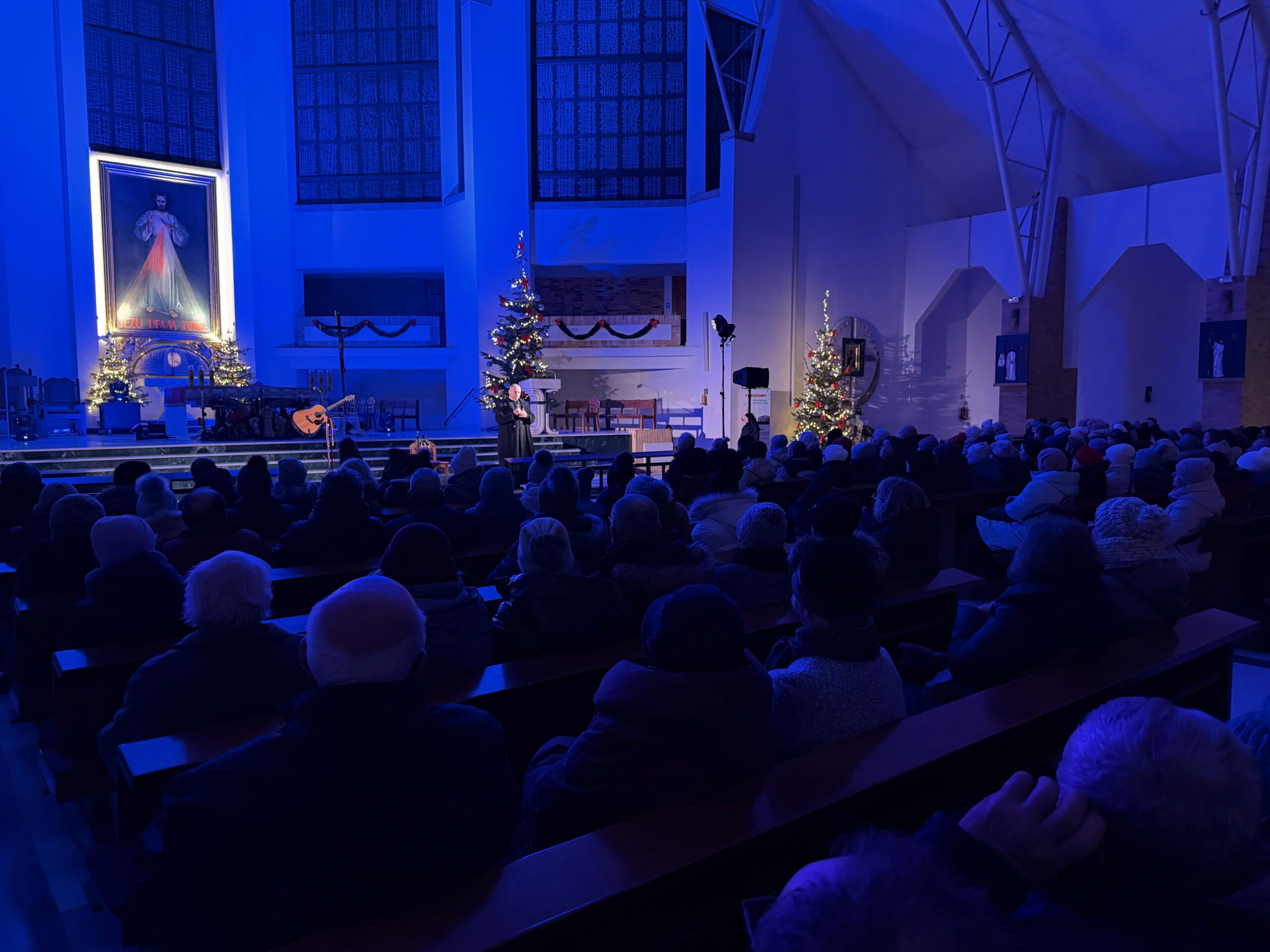 Tegoroczny koncert świąteczny w stargardzkiej świątyni pw. Miłosierdzia Bożego powierzono Wojtkowi Cugowskiemu i Bartkowi Jończykowi. Wstępnie miała zaśpiewać też żona Wojtka, Krystyna, która przepraszając publiczność nie mogła być z nami. W czwartek 22 stycznia 2026 r. w Dzień Dziadka, świątynia po raz kolejny wypełniła się po brzegi publicznością. Przybyli parafianie i goście a nie zawiedli prawdziwi przyjaciele. Dopełniając w ten mroźny wieczór czasu kolędowego udało się razem zaśpiewać najpiękniejsze kolędy i pastorałki. Artyści niewątpliwie rozgrzali wszystkich do wspólnego kolędowania.