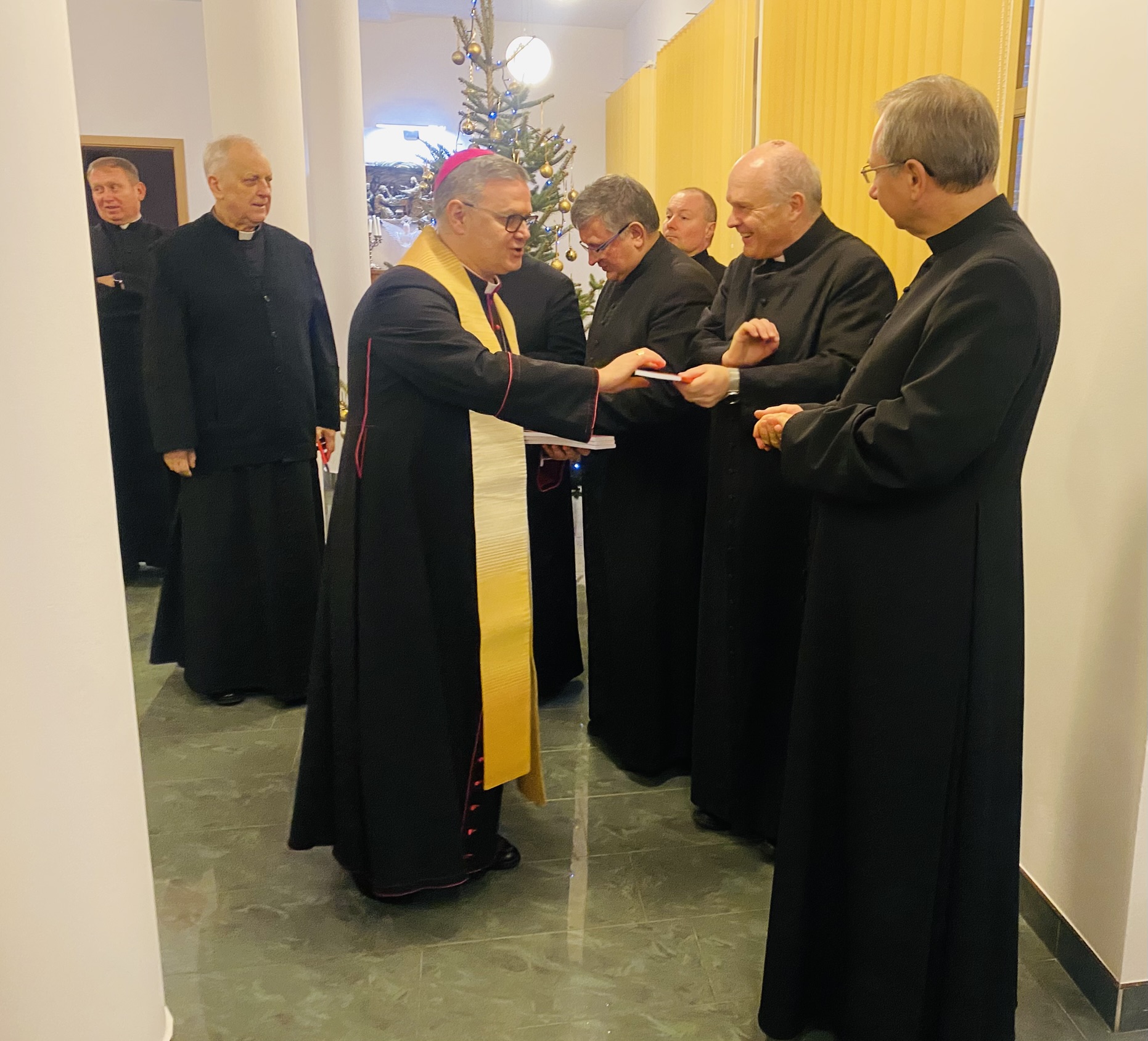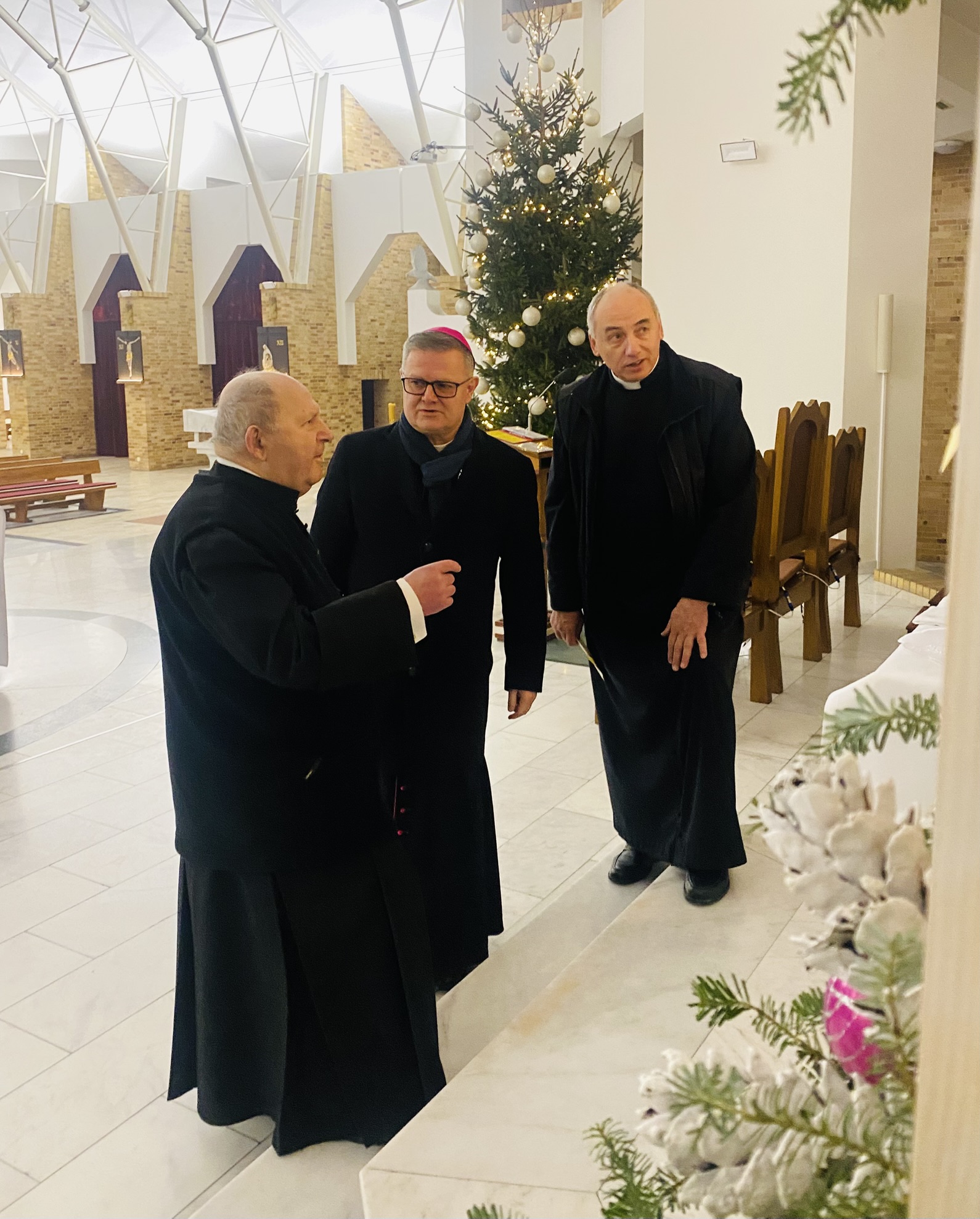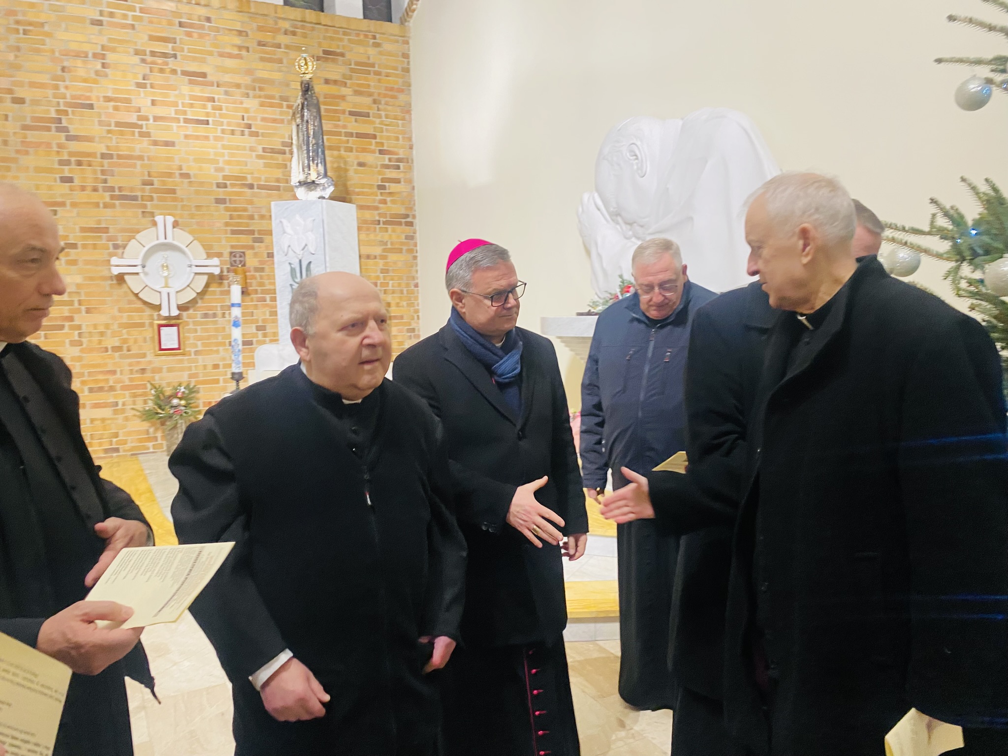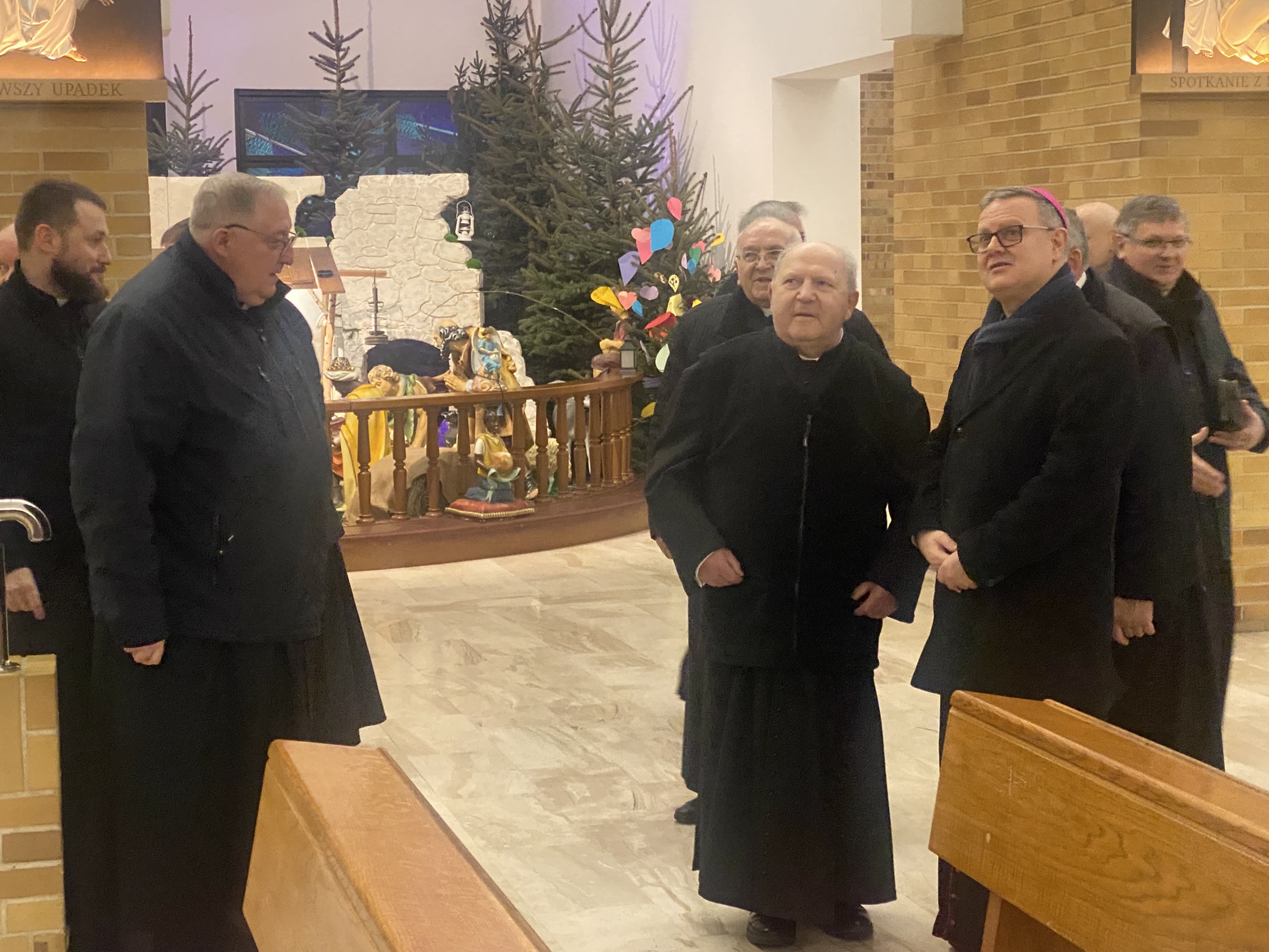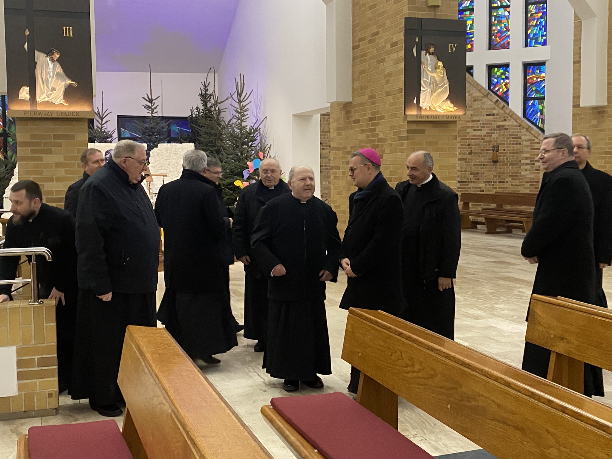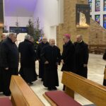 We wtorek 7 stycznia 2025 r. w godzinie Bożego Miłosierdzia odbyło się spotkanie Bożonarodzeniowe Księdza Arcybiskupa Wiesław Śmigla z duszpasterzami dekanatu Stargard – Zachód. Ekscelencji towarzyszył jego sekretarz ks. kan. dr Julian Głowacki, stargardzianin. Była to pierwsza wizyta Metropolity Szczecińsko-Kamieńskiego w stargardzkiej parafii pw. Miłosierdzia Bożego od dnia ingresu do archidiecezji. Spotkanie rozpoczęło się popołudniową modlitwą brewiarzową w dolnym kościele i Słowem Pasterskim w kontekście Świętego Roku Jubileuszowego, a wcześniej Arcybiskup oprowadzony przez ks. prałata i ks. proboszcza zwiedział monumentalną świątynię parafialną. Arcypasterz gratulował dzieła budowy świątyni i błogosławił dziełom duszpasterskim. Szczególnym momentem wizyty była modlitwa w kaplicy maryjnej z ukoronowaną figurą Madonny Cierpiącej z Dziećmi Swymi oraz pamięć przy tablicy z nazwiskami ofiar z wypadku pod Grenoble w lipcu 2007 r. Przy wspólnym stole w plebanijnym refektarzu była modlitwa błogosławieństwa domu oraz w serdecznej atmosferze okazja dla poszczególnych kapłanów do rozmowy i przedstawiania się nowemu Metropolicie. Każdy otrzymał Encyklikę Ojca Świętego Franciszka Dilexit nos o miłości Ludzkiej i Bożej serca Jezusa Chrystusa, a także Pasterskie Błogosławieństwo na codzienność posługi i duszpasterzowania w nowym Roku Pańskim 2025.