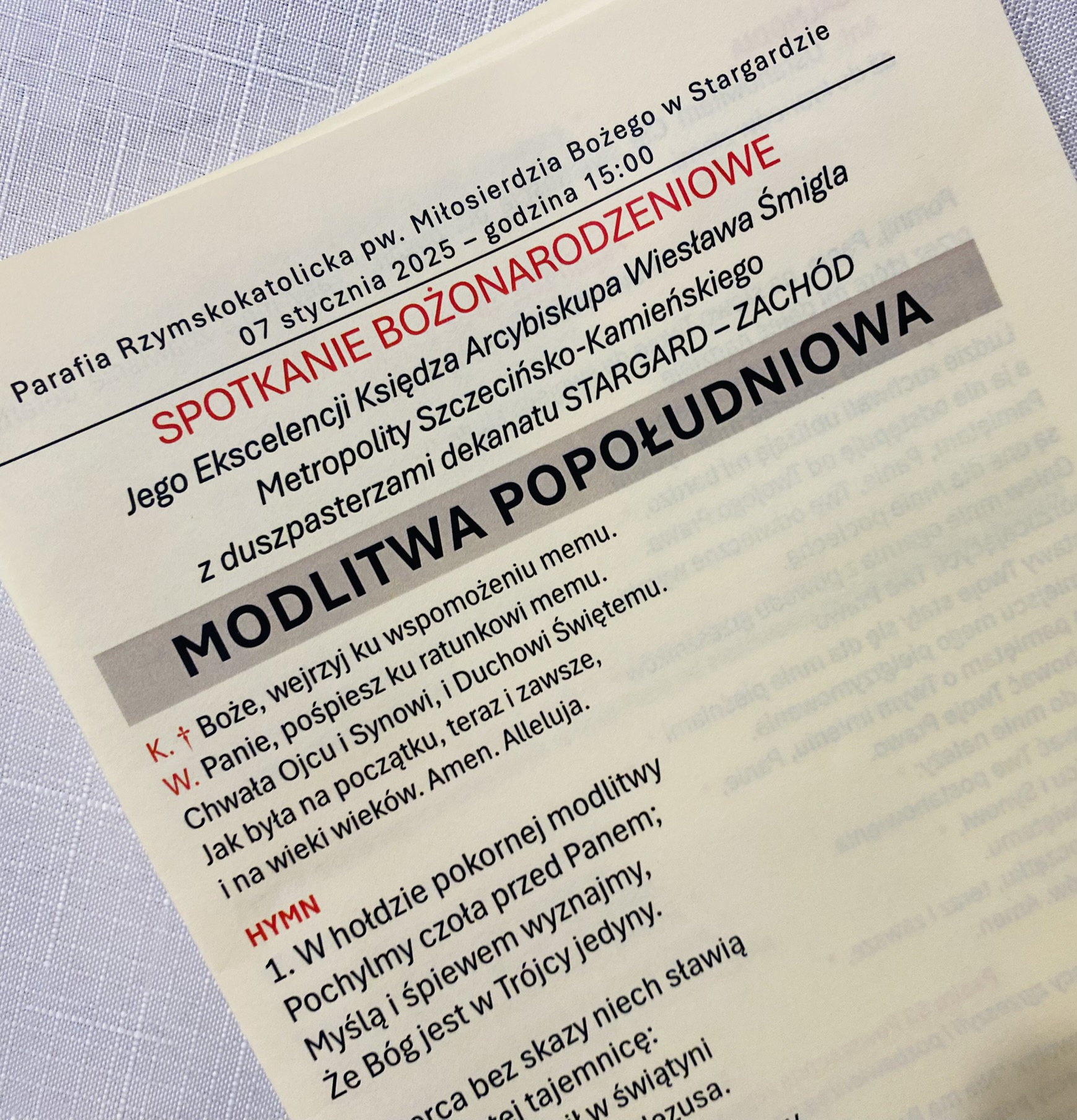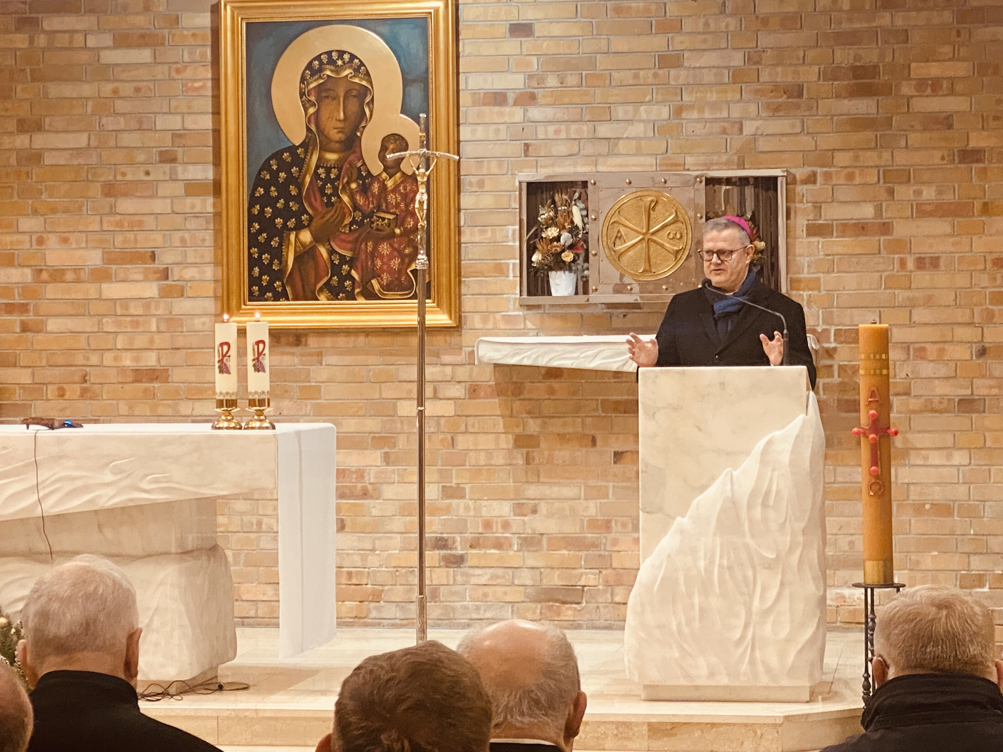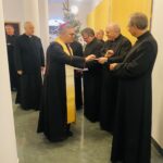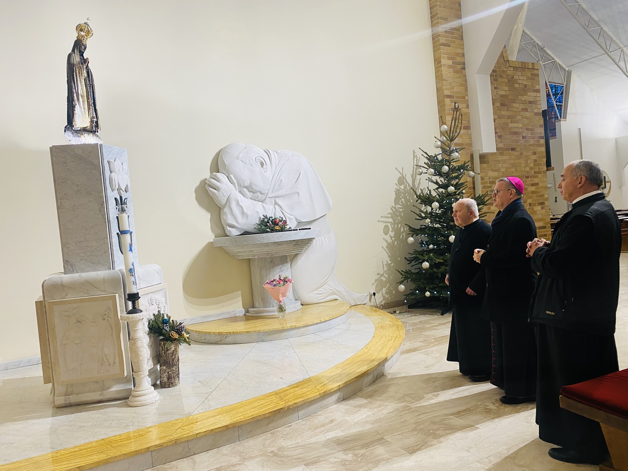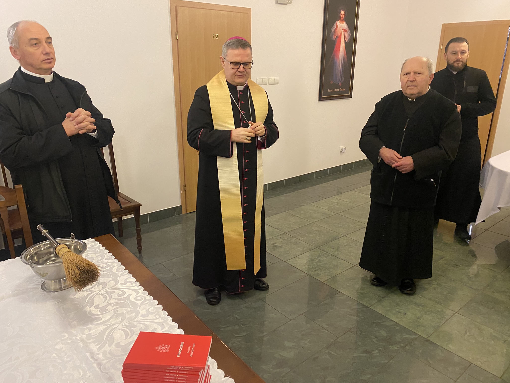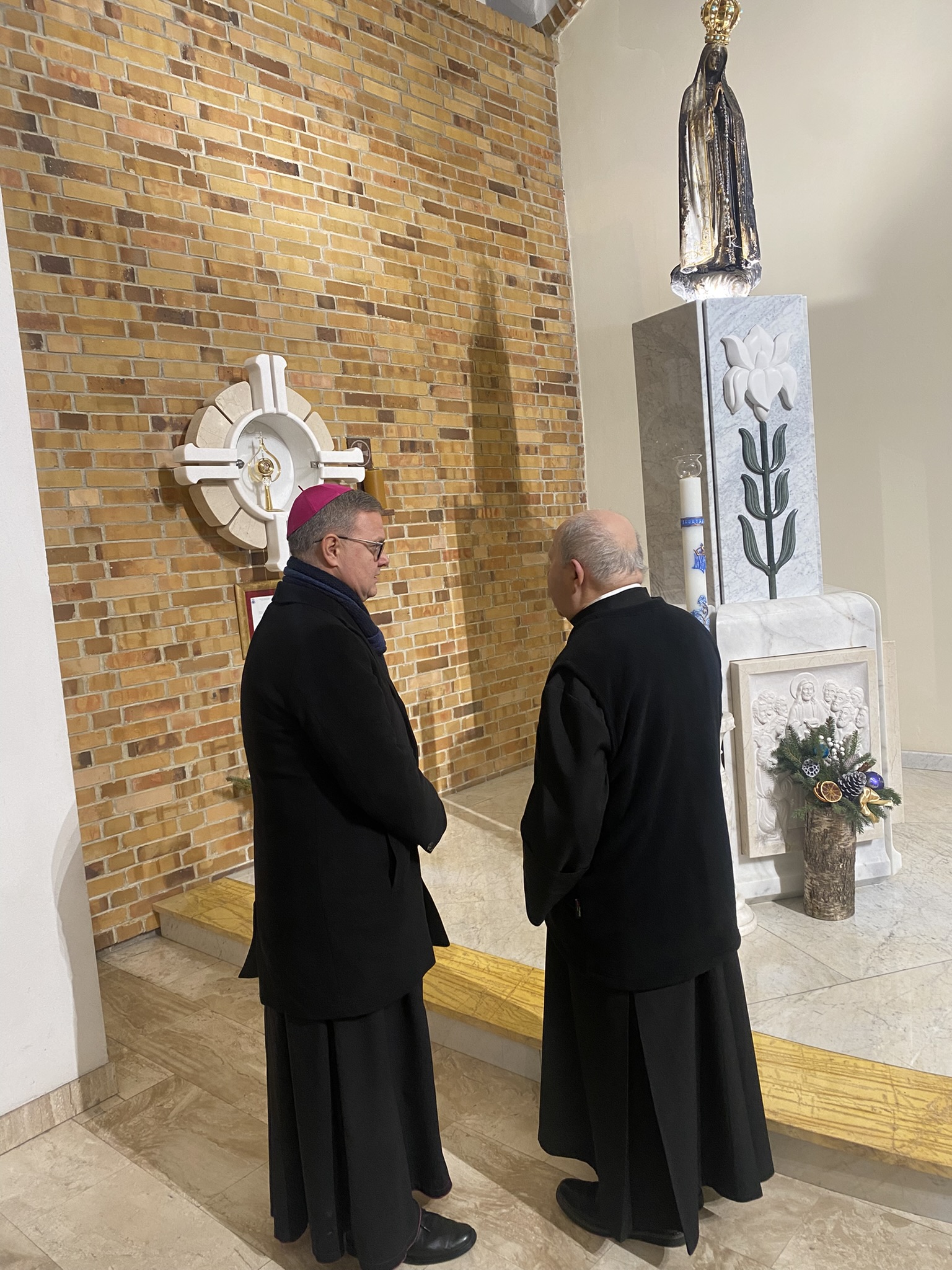 We wtorek 7 stycznia 2025 r. w godzinie Bożego Miłosierdzia odbyło się spotkanie Bożonarodzeniowe Księdza Arcybiskupa Wiesław Śmigla z duszpasterzami dekanatu Stargard – Zachód. Ekscelencji towarzyszył jego sekretarz ks. kan. dr Julian Głowacki, stargardzianin. Była to pierwsza wizyta Metropolity Szczecińsko-Kamieńskiego w stargardzkiej parafii pw. Miłosierdzia Bożego od dnia ingresu do archidiecezji. Spotkanie rozpoczęło się popołudniową modlitwą brewiarzową w dolnym kościele i Słowem Pasterskim w kontekście Świętego Roku Jubileuszowego, a wcześniej Arcybiskup oprowadzony przez ks. prałata i ks. proboszcza zwiedział monumentalną świątynię parafialną. Arcypasterz gratulował dzieła budowy świątyni i błogosławił dziełom duszpasterskim. Szczególnym momentem wizyty była modlitwa w kaplicy maryjnej z ukoronowaną figurą Madonny Cierpiącej z Dziećmi Swymi oraz pamięć przy tablicy z nazwiskami ofiar z wypadku pod Grenoble w lipcu 2007 r. Przy wspólnym stole w plebanijnym refektarzu była modlitwa błogosławieństwa domu oraz w serdecznej atmosferze okazja dla poszczególnych kapłanów do rozmowy i przedstawiania się nowemu Metropolicie. Każdy otrzymał Encyklikę Ojca Świętego Franciszka Dilexit nos o miłości Ludzkiej i Bożej serca Jezusa Chrystusa, a także Pasterskie Błogosławieństwo na codzienność posługi i duszpasterzowania w nowym Roku Pańskim 2025.