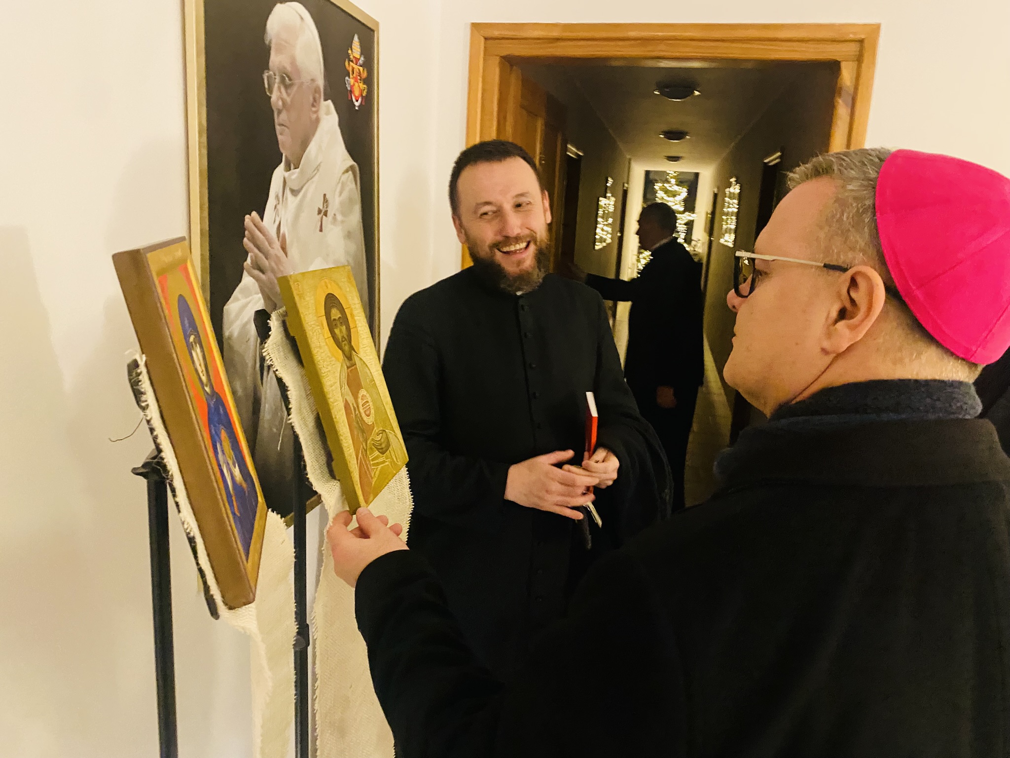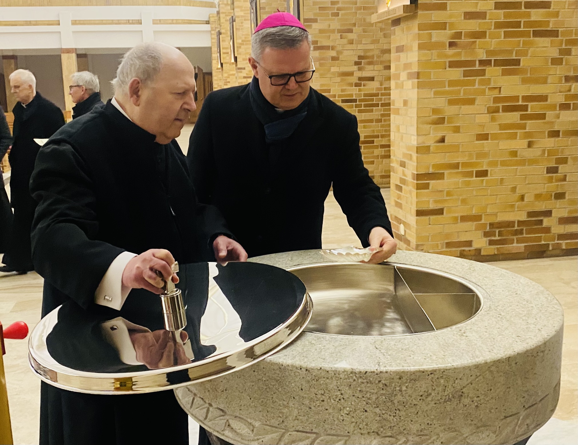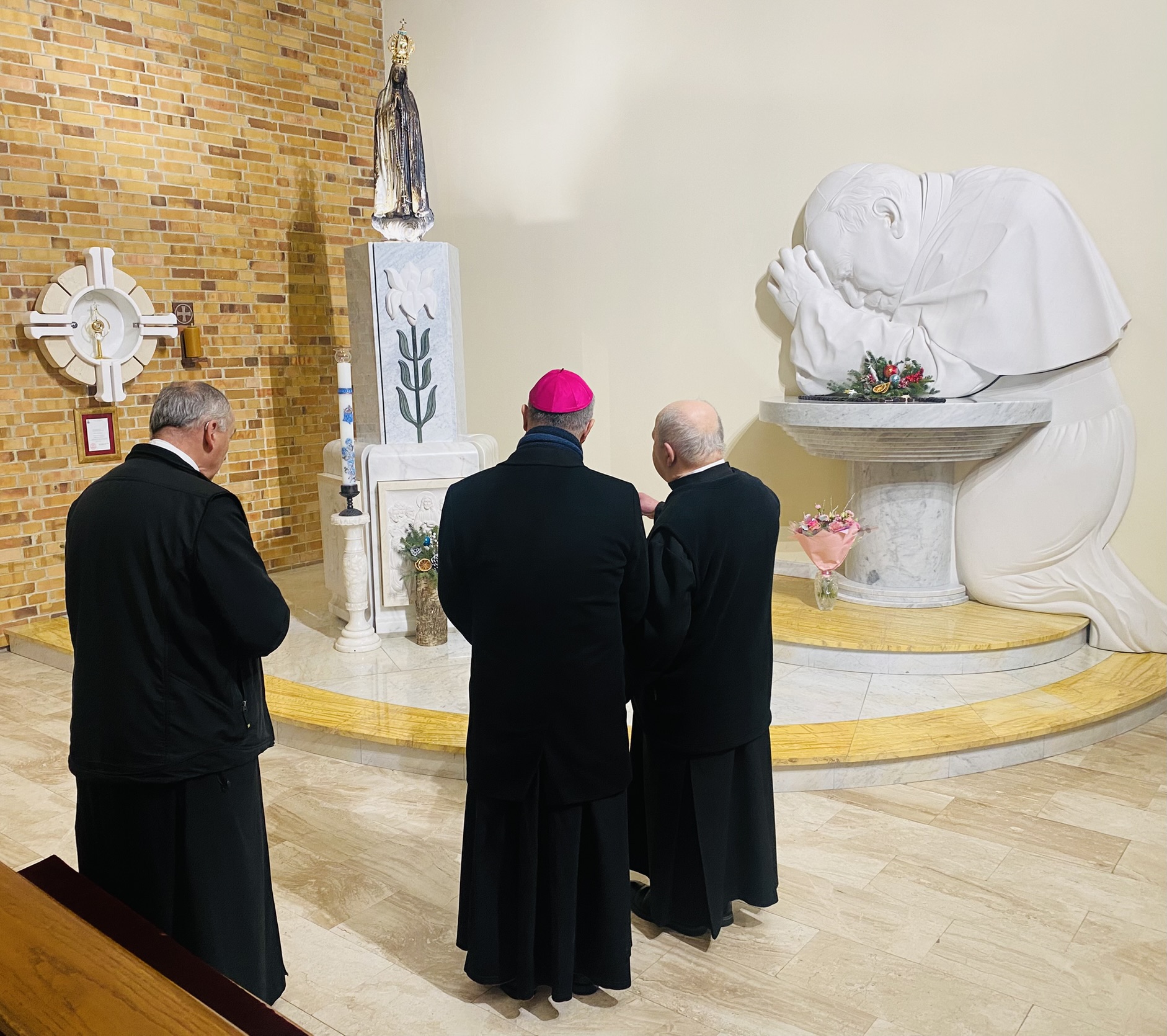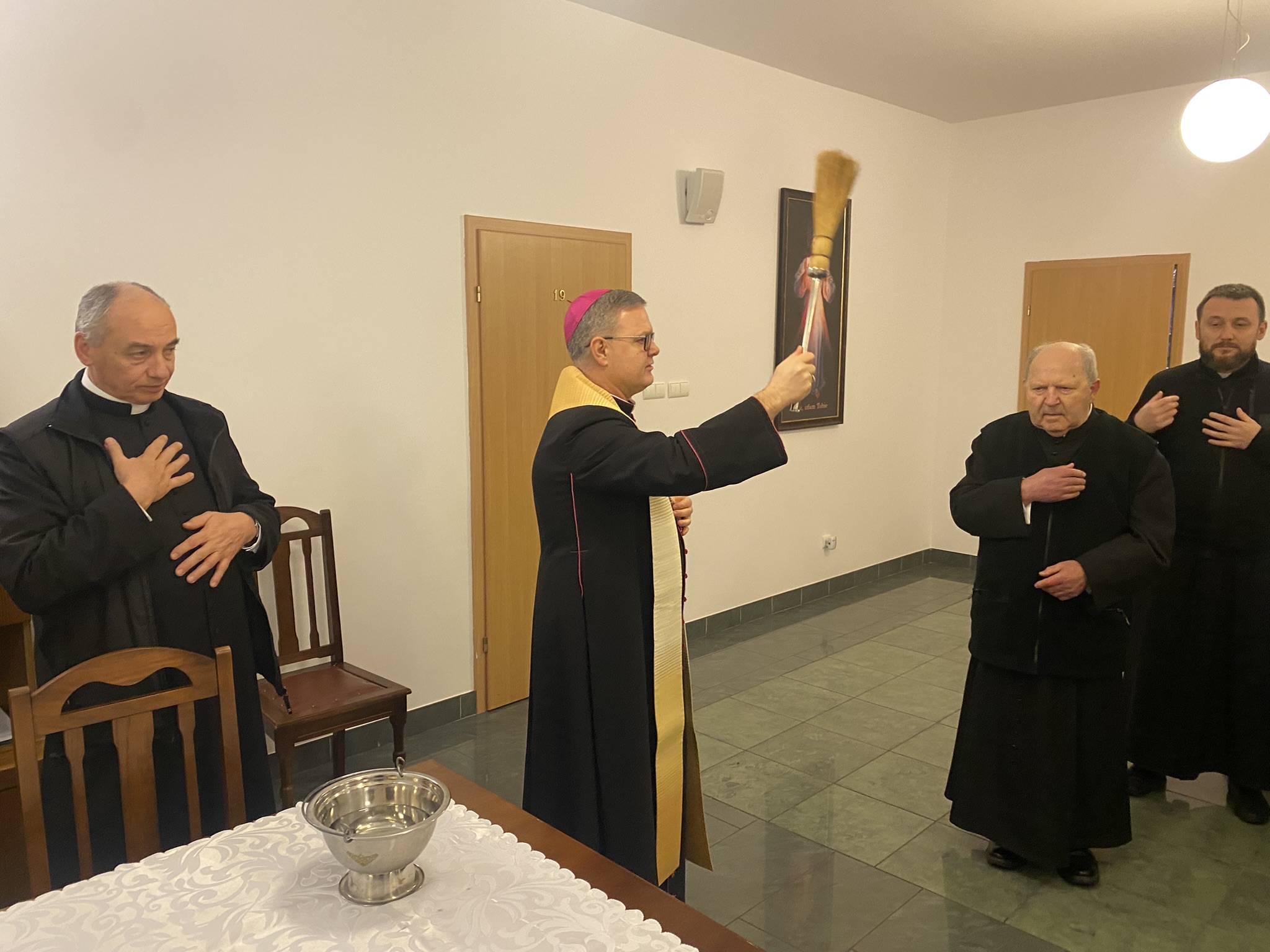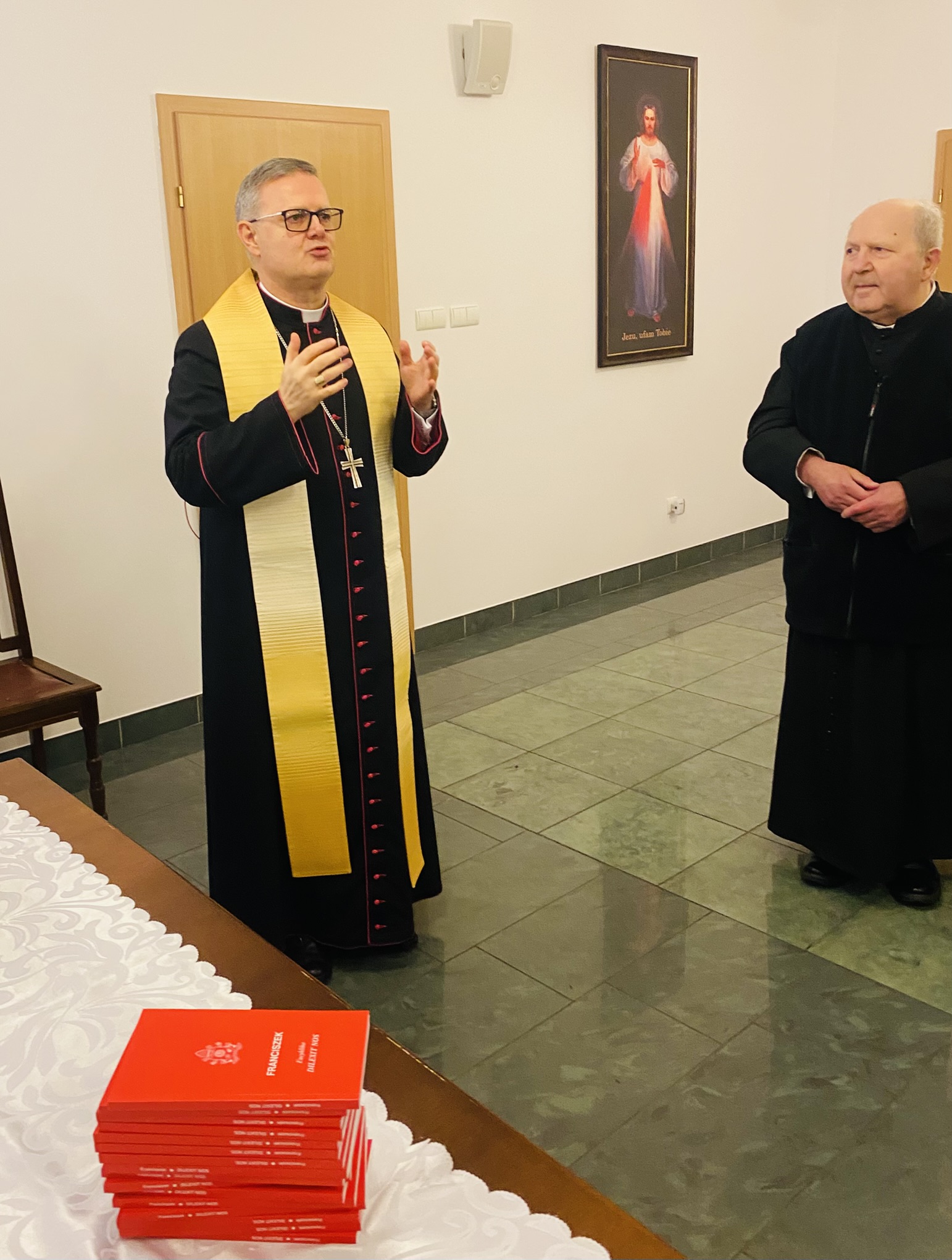 We wtorek 7 stycznia 2025 r. w godzinie Bożego Miłosierdzia odbyło się spotkanie Bożonarodzeniowe Księdza Arcybiskupa Wiesław Śmigla z duszpasterzami dekanatu Stargard – Zachód. Ekscelencji towarzyszył jego sekretarz ks. kan. dr Julian Głowacki, stargardzianin. Była to pierwsza wizyta Metropolity Szczecińsko-Kamieńskiego w stargardzkiej parafii pw. Miłosierdzia Bożego od dnia ingresu do archidiecezji. Spotkanie rozpoczęło się popołudniową modlitwą brewiarzową w dolnym kościele i Słowem Pasterskim w kontekście Świętego Roku Jubileuszowego, a wcześniej Arcybiskup oprowadzony przez ks. prałata i ks. proboszcza zwiedział monumentalną świątynię parafialną. Arcypasterz gratulował dzieła budowy świątyni i błogosławił dziełom duszpasterskim. Szczególnym momentem wizyty była modlitwa w kaplicy maryjnej z ukoronowaną figurą Madonny Cierpiącej z Dziećmi Swymi oraz pamięć przy tablicy z nazwiskami ofiar z wypadku pod Grenoble w lipcu 2007 r. Przy wspólnym stole w plebanijnym refektarzu była modlitwa błogosławieństwa domu oraz w serdecznej atmosferze okazja dla poszczególnych kapłanów do rozmowy i przedstawiania się nowemu Metropolicie. Każdy otrzymał Encyklikę Ojca Świętego Franciszka Dilexit nos o miłości Ludzkiej i Bożej serca Jezusa Chrystusa, a także Pasterskie Błogosławieństwo na codzienność posługi i duszpasterzowania w nowym Roku Pańskim 2025.