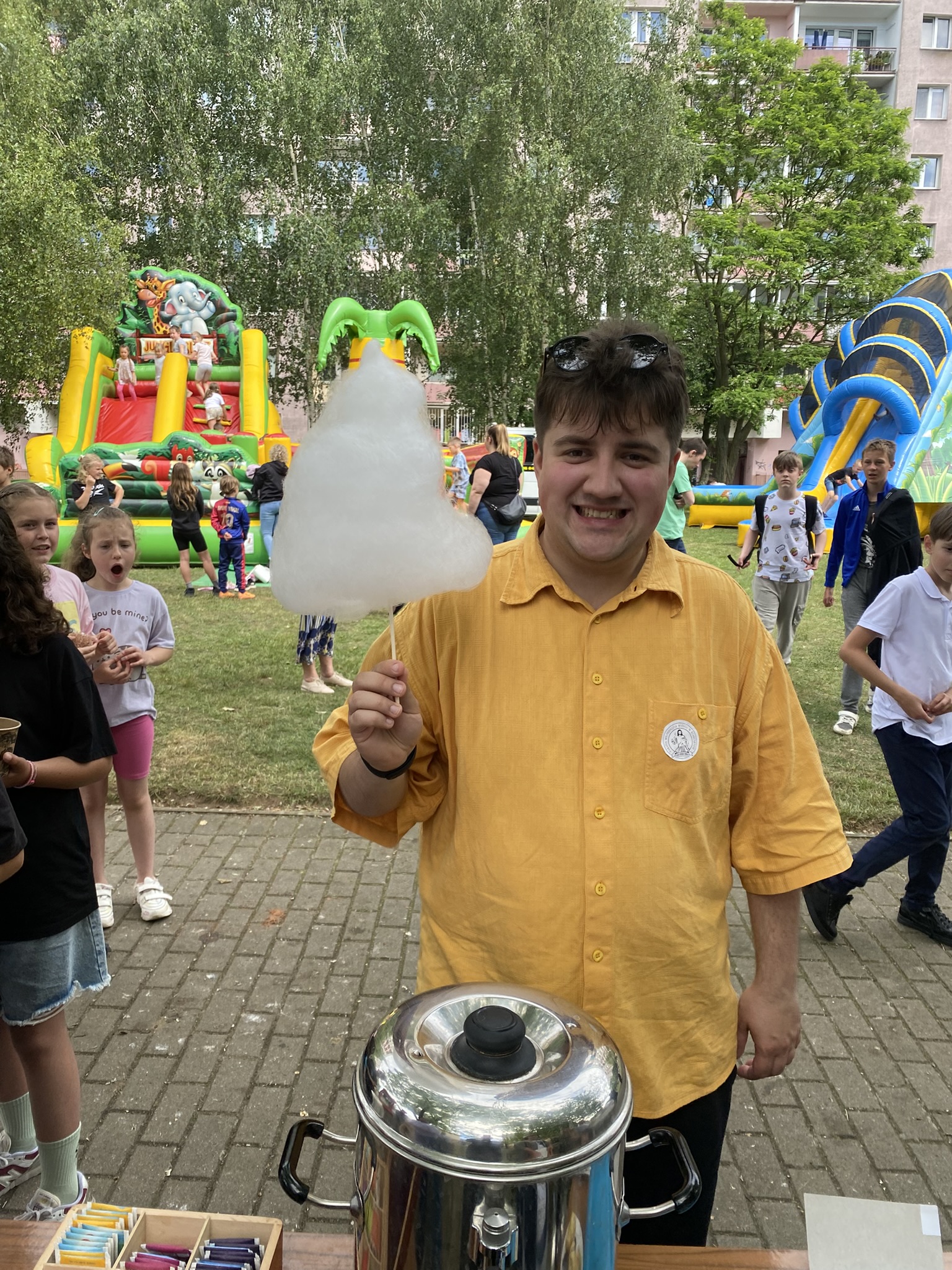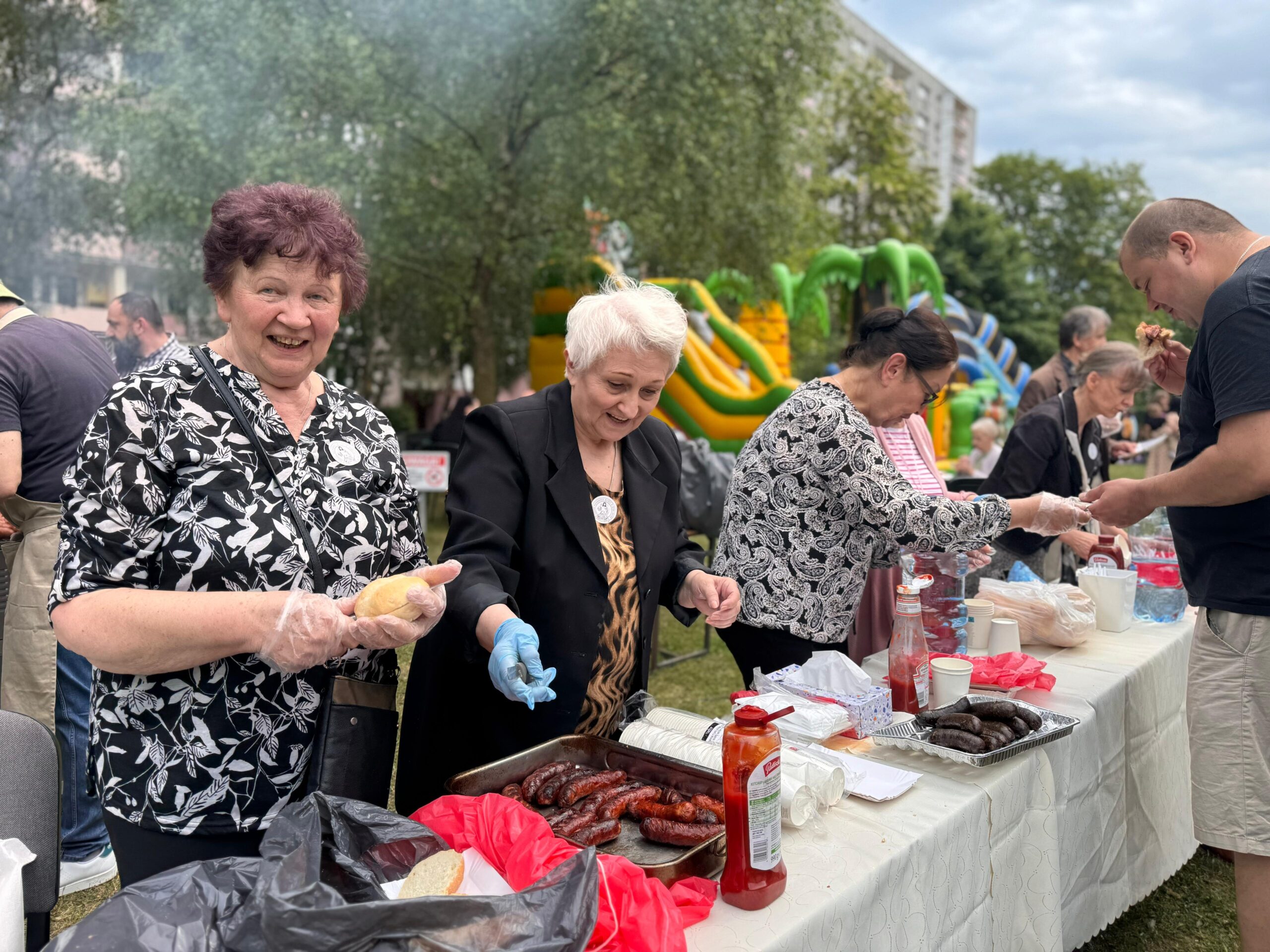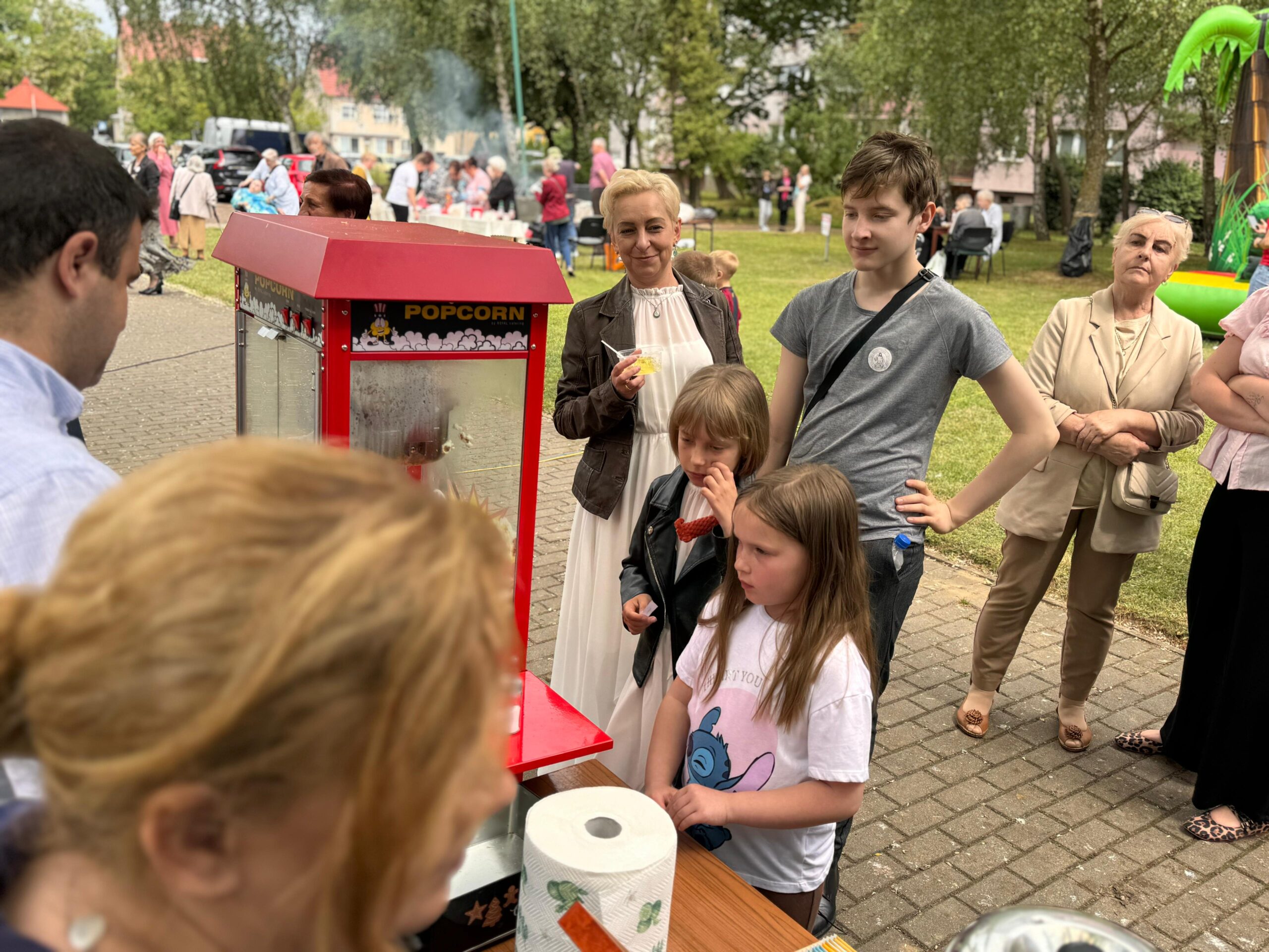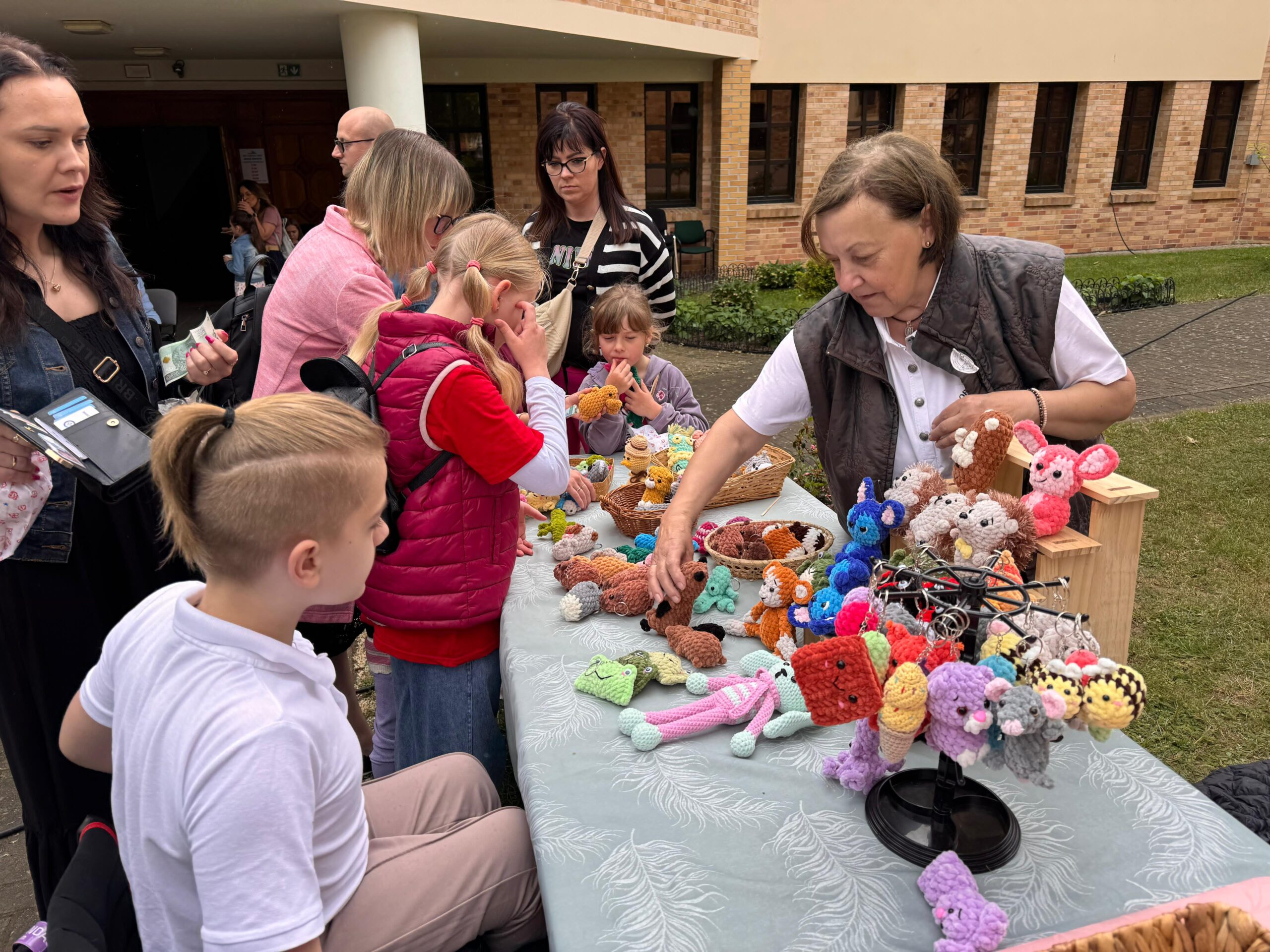Zaprezentowały się różne stoiska i punkty wystawiennicze. Całoroczny zespół kawiarenki parafialnej FAUSTYNKA zadbał o słodkie stoły i ciepłe napoje w tym pyszną włoską kawę. Spisali się Apostołowie Bożego Miłosierdzia przyrządzając wzorowo grilla i serwując pyszne kiełbaski oraz kaszankę. Nie zabrakło straganów z rękodziełem i miodem. Największym powodzeniem cieszyły się słodkości, w tym rozmaite ciasta, ciasteczka, rogaliki upieczone z miłością przez utalentowane parafianki oraz wata cukrowa i popcorn. Jak co roku największym wzięciem cieszyły się zamki dmuchane do których ustawiały się długie kolejki.
