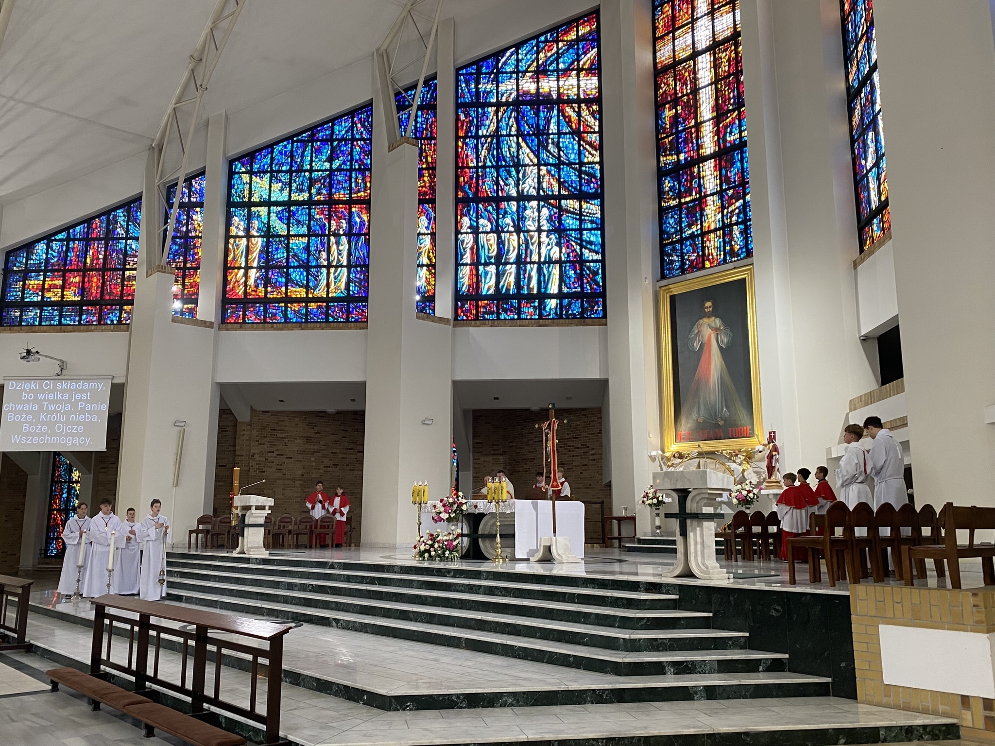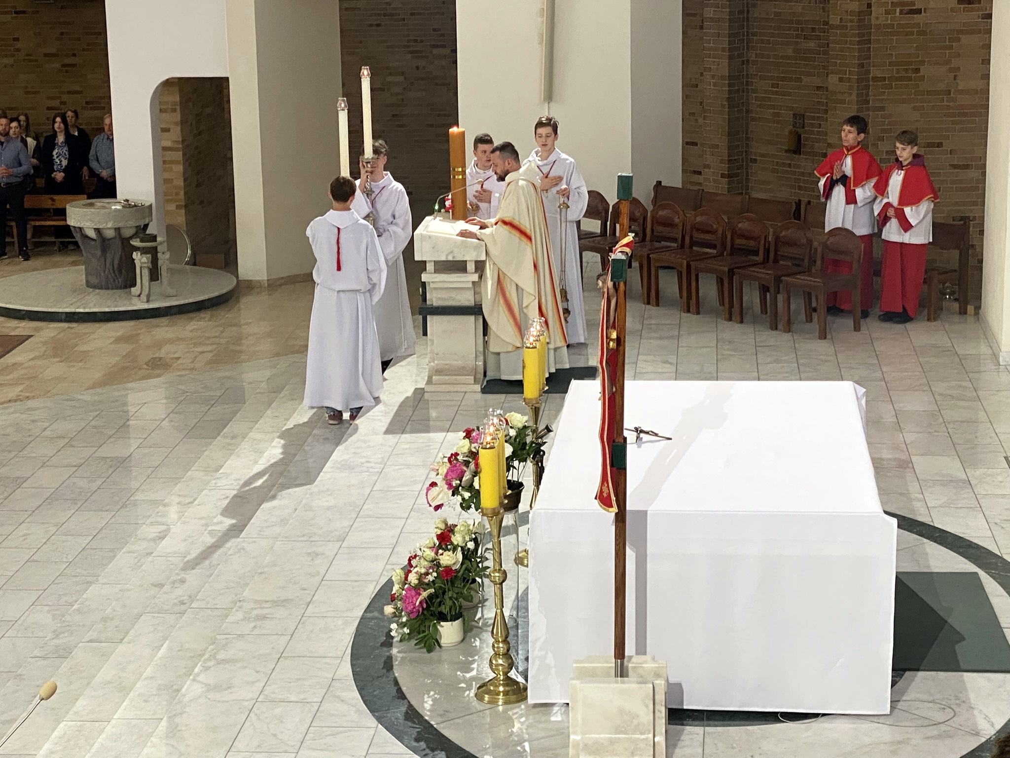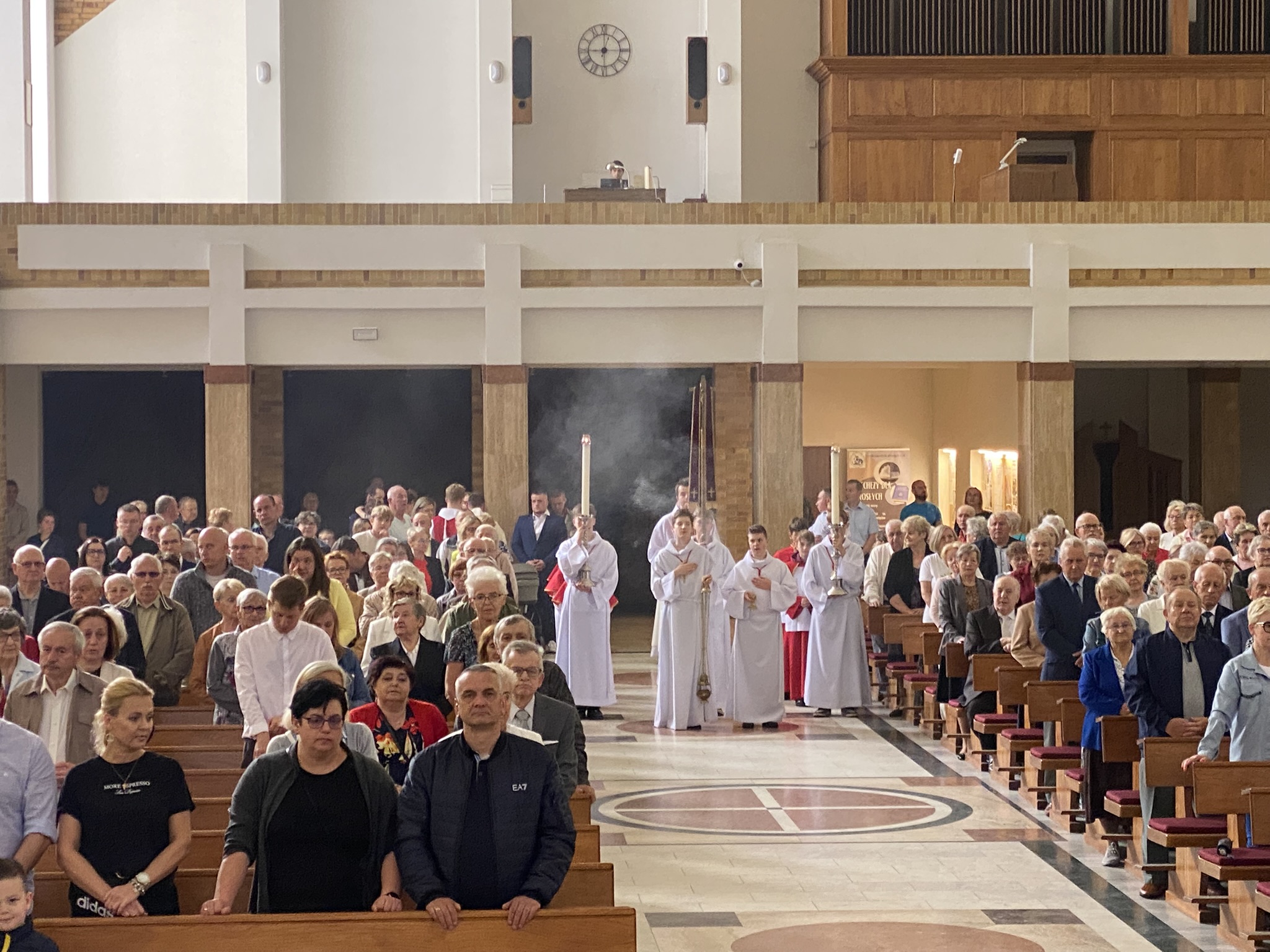 W uroczystość Wniebowstąpienia Pańskiego, 1 czerwca 2025 r., do południa sprawowano w kościele Eucharystie według długo zapowiadanego i wyczekiwanego nowego porządku liturgicznego: o godz. 7:00, 8:30, 10:00 i 12:00 oraz po południu o 18:00. Uroczystą asystę Sumy z okazji pierwszej niedzieli miesiąca przygotowała Liturgiczna Służba Ołtarza.