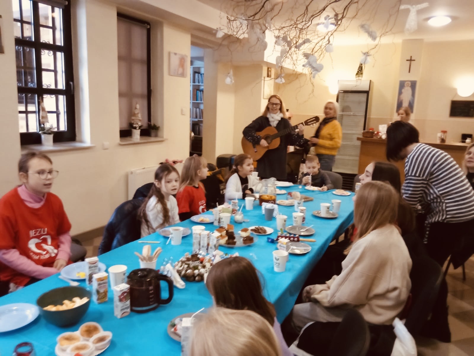 W uroczystość Objawienia Pańskiego parafialna kawiarenka gościła w świąteczno-noworoczne atmosferze wspólnotę muzyczną Promyków Jezusa Miłosiernego. Dzięki rodzicom i s. Zofii piękne spotkanie pozwoliło uwielbić tajemnicę Bożego Narodzenia i przeżyć wspaniałe chwile przy świątecznym stole.