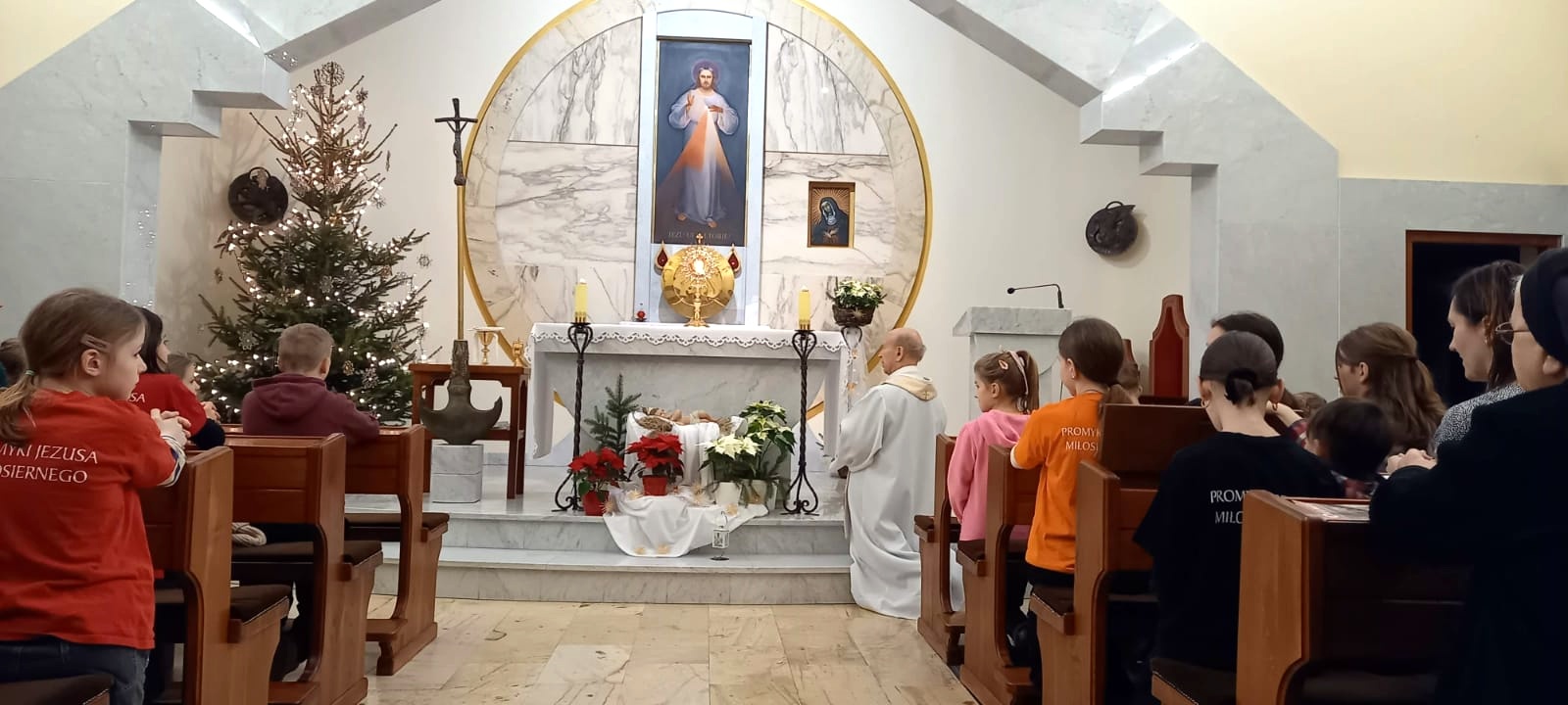 W drugą niedzielę po Bożym Narodzeniu 5 stycznia 2025 r. o godzinie 15:00 Myśliborską kaplicę wypełniły po brzegi rodziny Promyków z Gorzowa Wielkopolskiego, Myśliborza i Stargardu, które zgromadziły się na wspólnym kolędowaniu. Spotkanie rozpoczęło się Eucharystią, po której rodziny zostały zaproszone do klasztornego refektarza na słodki poczęstunek. Radosny śpiew kolęd i pastorałek, modlitwa przy żłóbku i akt przyjęcia maleńkiego Pana Jezusa do każdego domu wzmocniły wspólnotowe i rodzinne więzi Promyków. Nieoczekiwanie pod choinką znalazły się też prezenty, choć wydawało się, że Mikołaj już dawno zakończył swoją pracę. Rodzinne kolędowanie Promyków było dla wszystkich dobrym, pokrzepiającym duchowo doświadczeniem.