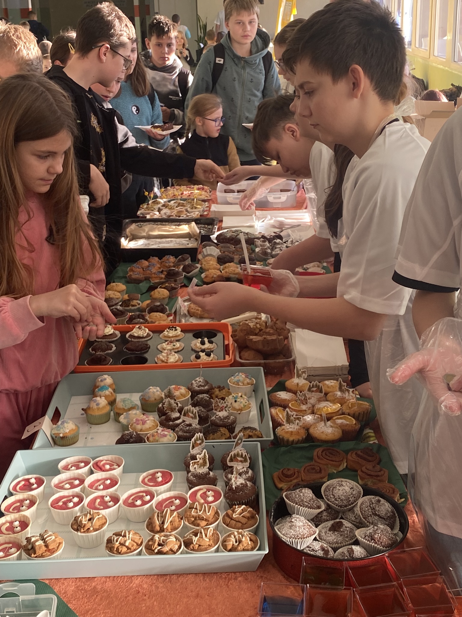 Bardzo serdecznie dziękujemy najpierw Rodzicom uczniów za pomoc i pomysłowość w przygotowaniu wielu różnych słodkości. Naszą serdeczną wdzięczność wyrażamy naszemu Drogiemu Gronu Pedagogicznemu, za pomoc oraz za wsparcie, które tak chętnie okazały panie opiekujące się wolontariatem. Szczególne podziękowania należą się klasie 7a z panią Dorotą Zawadzińską, która chętnie przyjęła na siebie koordynację i całościowe przygotowanie oraz obsługę tegorocznego kiermaszu. Ciekawych i nowych pomysłow nie zabrakło.