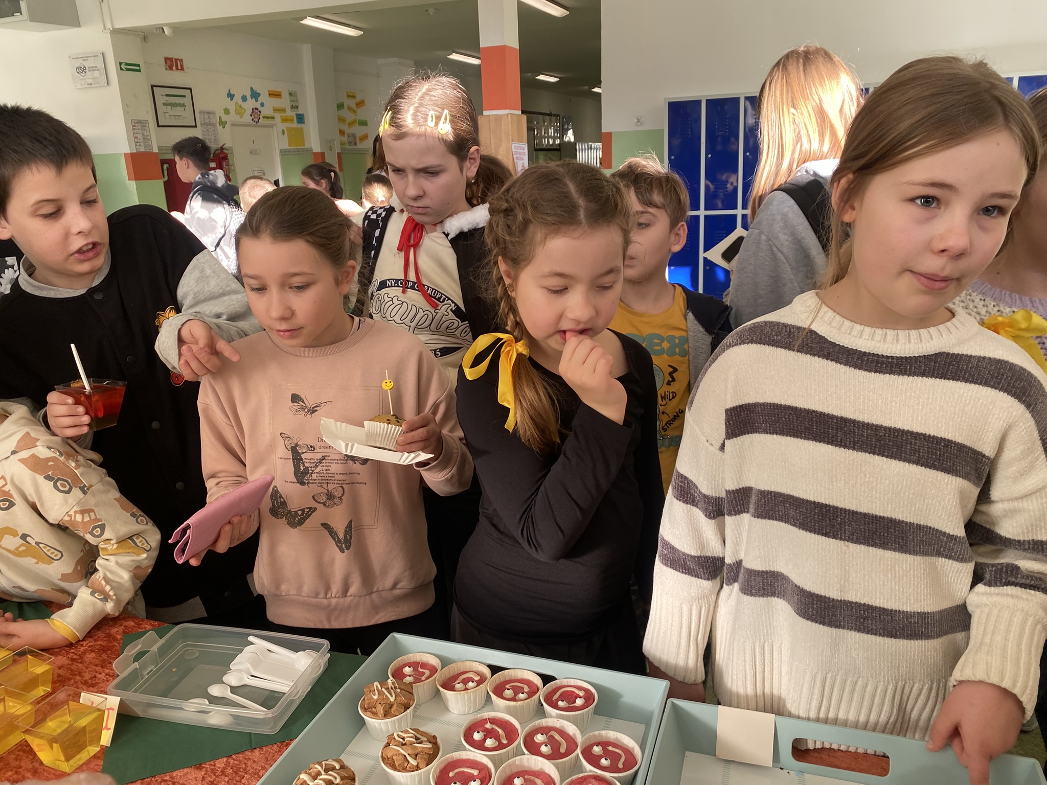 W piątek 21 listopada 2025 r. podczas Światowego Tygodnia Ubogich w stargardzkiej Szkole Podstawowej nr 2 z Oddziałami Integracyjnymi odbył się kolejny słodki kiermasz wypieków i słodyczy w ramach finału akcji pt.: ADOPCJA NA ODLEGŁOŚĆ wspierającej naszą koleżankę z Afryki – Holidah Munda Muthee. Co roku w miesiącu misyjnym korytarz szkolny wypełnia się zapachami najlepszych ciast i babeczek oraz galaretek, muffinków i innych pysznych słodkości przygotowanych przez rodziców i opiekunów naszych uczniów.