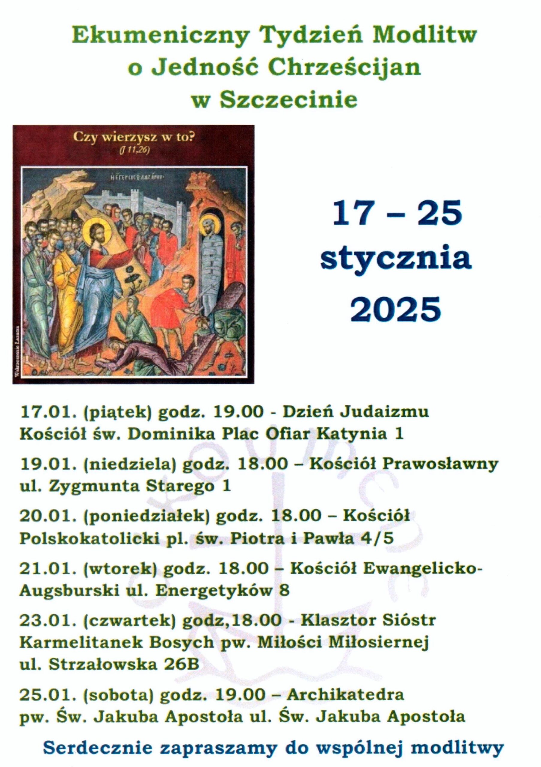 - W Uroczystość Objawienia Pańskiego, w poniedziałek 6 stycznia 2025 r., odbędzie się szczeciński Orszak Trzech Króli” pod honorowym patronatem Abpa Wiesława Śmigla oraz Prezydenta Miasta Piotra Krzystka. Rozpoczęcie o godz. 11.30. kolędowaniem na Placu Armii Krajowej przy Urzędzie Miasta, a zakończenie pokłonem trzech króli, na Placu Adamowicza. Zapraszamy całe rodziny wraz z dziećmi i młodzieżą. W Uroczystość Objawienia Pańskiego, 6 stycznia, będziemy otaczać szczególną modlitwą obcokrajowców, którzy studiują, pracują i mieszkają lub czasowo przebywają w naszej Archidiecezji. W tym dniu zapraszamy obcokrajowców na uroczystą Mszę św. o godz. 12.00 do Bazyliki Archikatedralnej w Szczecinie z udziałem Korpusu Konsularnego.