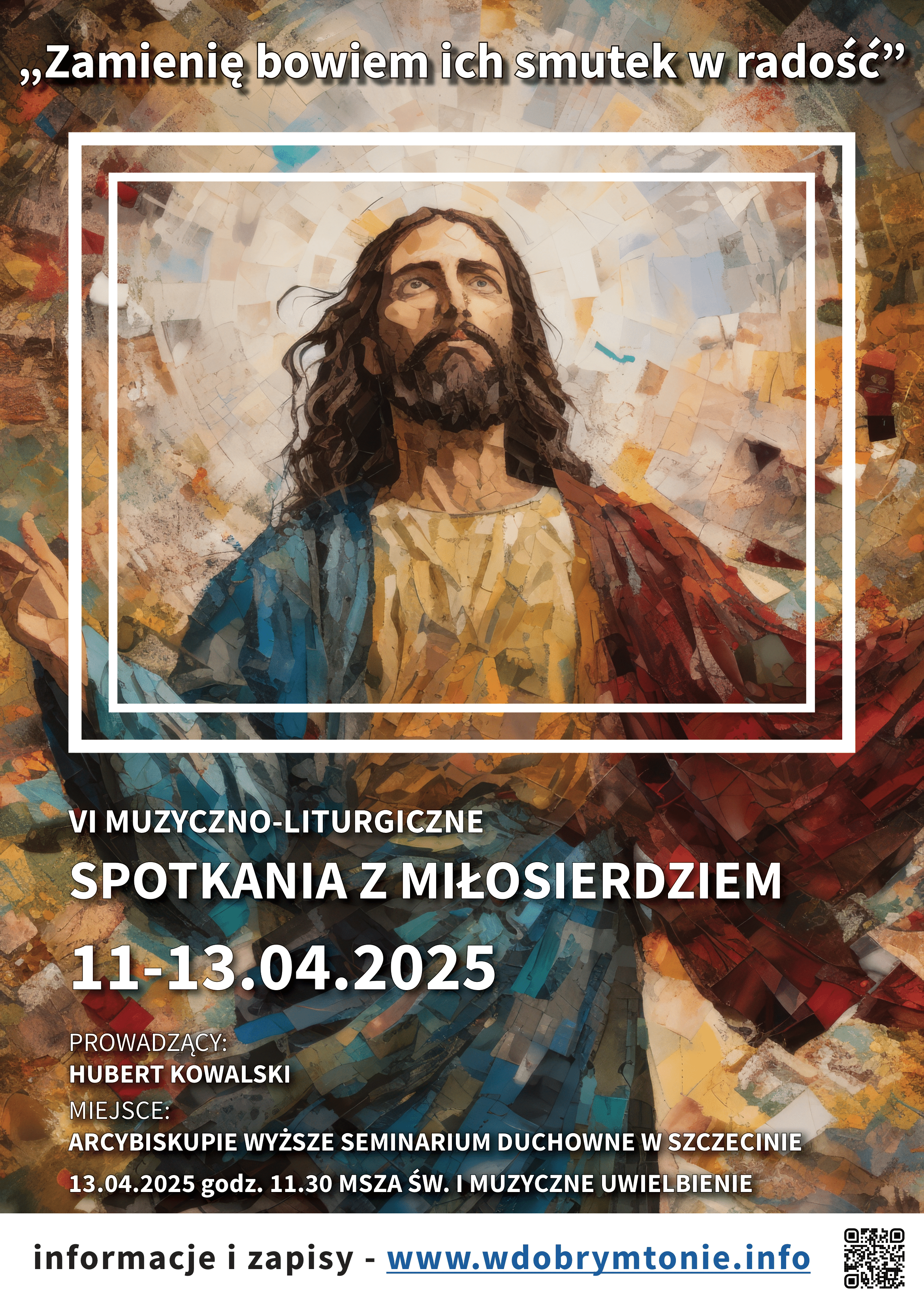 - Warsztaty z cyklu „Spotkania z Miłosierdziem odbędą się od 11 do 13 kwietnia w Arcybiskupim Wyższym Seminarium Duchownym w Szczecinie, ul. Papieża Pawła VI 2. Warsztaty muzyczne dedykowane są wszystkim, którzy chcą pogłębić swoją wiarę poprzez śpiew i muzykę liturgiczną. Warsztaty poprowadzi Hubert Kowalski, – ceniony muzyk i dyrygent, który od lat angażuje się w rozwój muzyki liturgicznej w kościele. Warsztaty zwieńczy uroczysta Msza św. z muzycznym uwielbieniem w niedzielę, 13 kwietnia br. o godz. 11:30. Link do rejestracji: https://wdobrymtonie.info/rejestracja/