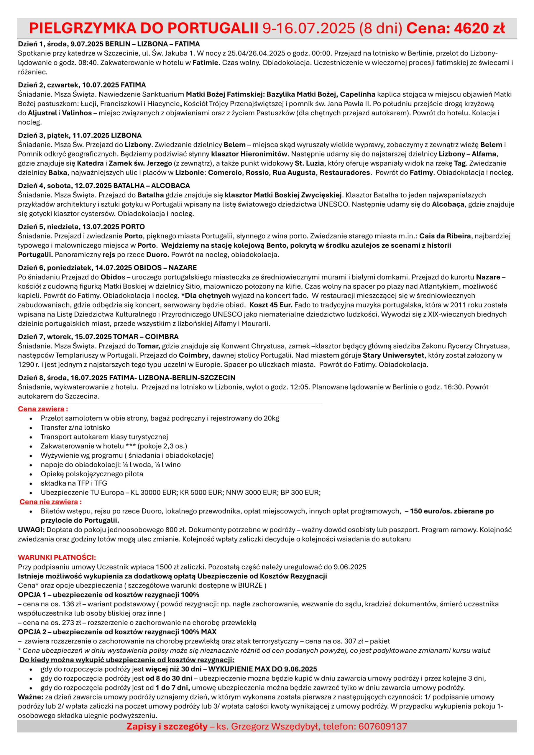 - Na tablicy ogłoszeń znajdziemy plakaty o pielgrzymkach organizowanych przez inne parafie: do Rzymu na uroczystość poświęcenia paliusza naszemu Arcypasterzowi w czerwcu oraz do Fatimy w Portugalii w lipcu.