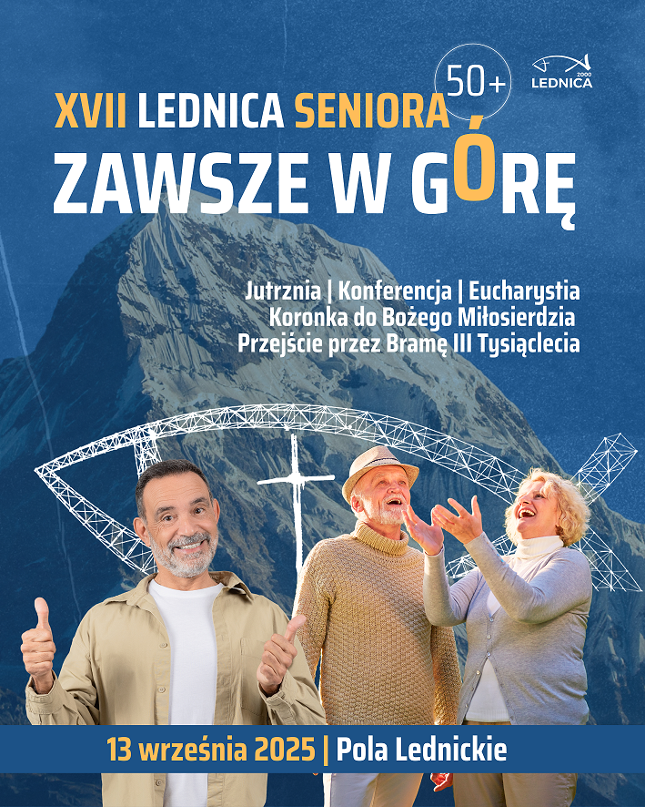 - W sobotę, 13 września na Polach Lednickich będzie miało miejsce wydarzenie XVII Lednica Seniora pod hasłem: „Zawsze w górę”. Szczegółowe informacje oraz zapisy poprzez: www.spotkanielednica2000.pl/category/lednica-seniora.