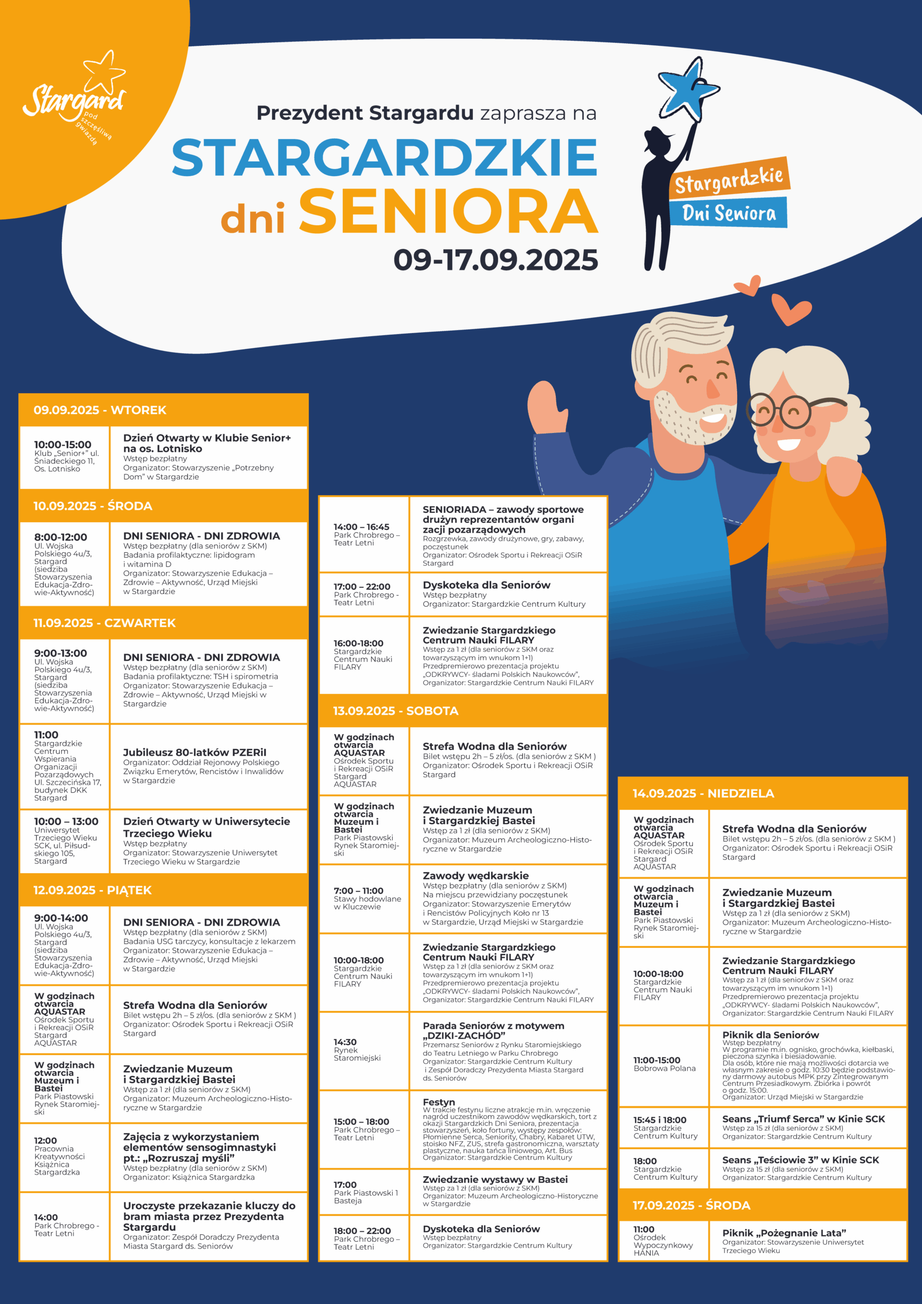 - Rozpoczynają się Stargardzkie Dni Seniora (9-17 września – szczegóły na plakatach) dlatego w tym tygodniu nie obędzie się kawiarenka dla seniorów FAUSTYNKA.