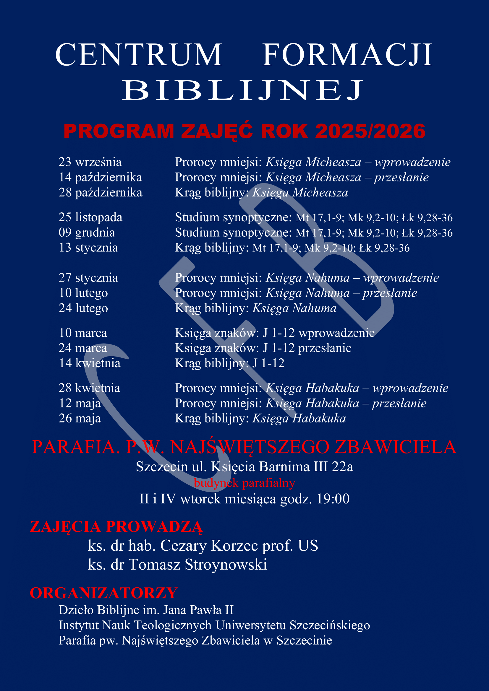 - Centrum Formacji Świeckich przy Wspólnocie Sióstr Uczennic Krzyża w Szczecinie, zaprasza na X Rekolekcje Liturgiczne Mistagogia liturgii chrzcielnej. Zanurzeni w źródle życia, które odbędą się w dniach 19 – 21 września w Arcybiskupim Wyższym Seminarium Duchownym w Szczecinie, ul. Pp. Pawła VI 2. Rekolekcje dedykowane są wszystkim, którzy pragną głębiej przeżyć tajemnicę wiary. Zgłoszenia do 14 września poprzez formularz dostępny na stronie: www.centrumformacji.eu/index.php/szkolaliturgicznegoanimatoramuzycznego/rekolekcjeliturgiczne.html