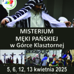 7. Misjonarze Świętej Rodziny zapraszają do Górki Klasztornej (diecezja bydgoska) na Misterium Męki Pańskiej, które będzie przedstawiane w dniach: 5, 6, 12, 13 kwietnia Szczegółowe informacje na stronie: https://gorkaklasztorna.com/aktualnosci/misterium-meki-panskiej-2025