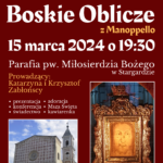 - Przed nami wielkopostne weekendowe spotkanie z Boskim Obliczem z Manopello. Młodzież zapraszamy na czuwanie nocne w piątek wieczorem, rozpoczęcie o 19.30 – do północy, a wszystkich parafian i naszych przyjaciół w sobotę przed południem o godz. 10.00. W programie, świadectwo, konferencja i modlitwa. Do nabycia będą także dobre książki katolickie.