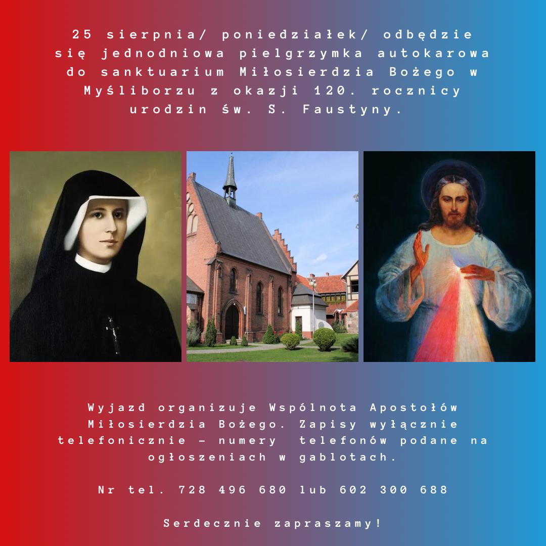 - Zapraszamy zainteresowanych seniorów na spotkanie informacyjne dotyczące projektu utworzenia klubu seniora pt. „Faustyna dla seniora” dofinansowanego przez urząd Miasta. Spotkanie odbędzie się w czwartek 14 sierpnia o godzinie 16:00 w kawiarence parafialnej.