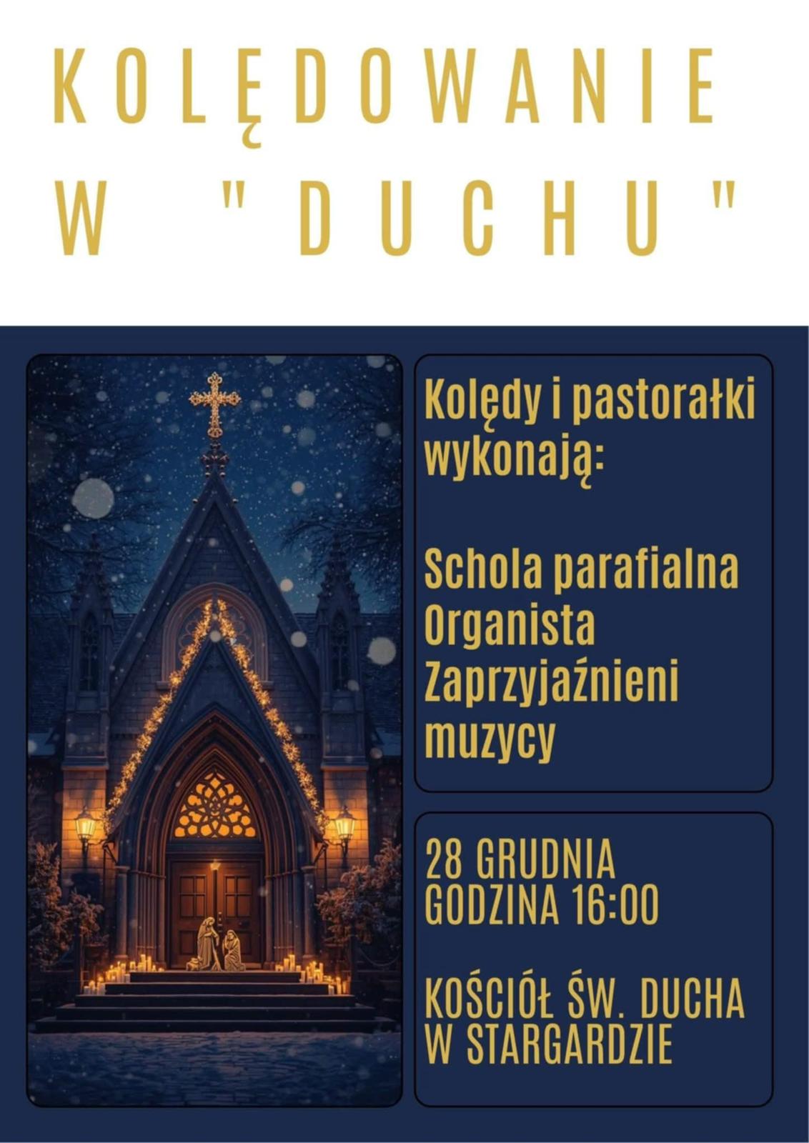- Ogrzewany stargardzki kościół pw. Ducha Świętego zaprasza na wspólne kolędowanie „W DUCHU” w niedzielę 28 grudnia o 16:00.