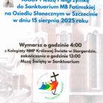 Więcej informacji na stronie: www.teo.usz.edu.ploraz na Facebooku Wydziału Teologicznego (www.facebook.com/wt.usz/?locale=pl_PL) - Kolejna 33. Piesza Pielgrzymka ze Szczecina do Sanktuarium Miłosierdzia Bożego w Myśliborzu odbędzie się w dniach od 23.08. do 25.08. 2025. Pod hasłem: „Ufam, jak… bł. Karolina Kózkówna!” Pielgrzymka przejdzie przez następujące miejscowości: Szczecin – Gardno – Chwarstnica – Rożnowo – Banie – Kierzków – Golenice – Myślibórz. Uroczysta inauguracja pielgrzymki nastąpi 23.08. (sobota) podczas Mszy Św. o godz. 7.00 w Sanktuarium Matki Bożej Fatimskiej na os. Słonecznym w Szczecinie. Zapisy są możliwe poprzez stronę internetową pielgrzymki: www.pielgrzymka-mysliborska.pl Do pielgrzymowania zapraszamy młodzież i chętnych. Relacje na żywo z trasy pielgrzymki dla osób pozostających w duchowej łączności poprzez: www.facebook.com/mysliborska