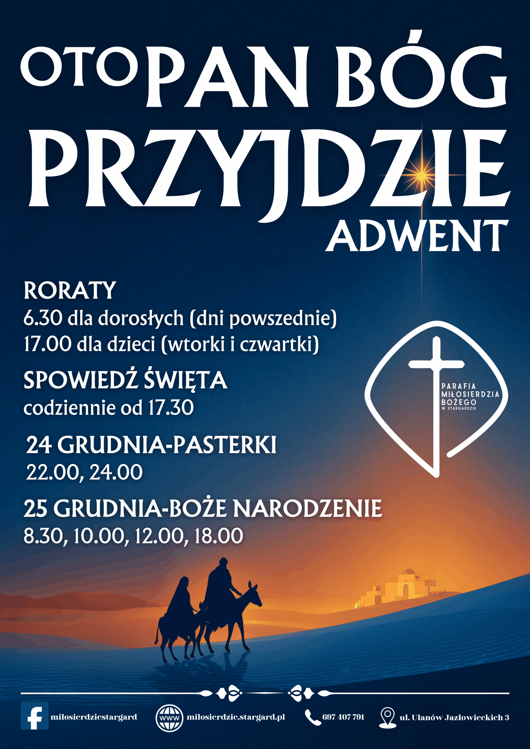 - Roraty, na które wszyscy przychodzimy z lampionami, będziemy odprawiali w dni powszednie codziennie o 6:30 rano (w soboty ze słodkim ciastem i kakao). Zaś dzieci z rodzicami zapraszamy we wtorki i czwartki o godz. 17:00 z lampionami i przygotowanymi sercami dobrych uczynków. W adwencie śpieszymy z pomocą potrzebującym poprzez: świece Caritas, Wigilijnego Dzieła Pomocy Dzieciom, akcję zbierania przyborów higienicznych dla niemowląt Paczuszka Dla Maluszka oraz Torbami Miłosierdzia wypełnionymi produktami spożywczymi dla potrzebujących a także innymi naszymi osobistymi postanowieniami i szlachetnymi dziełami wobec bliźnich.