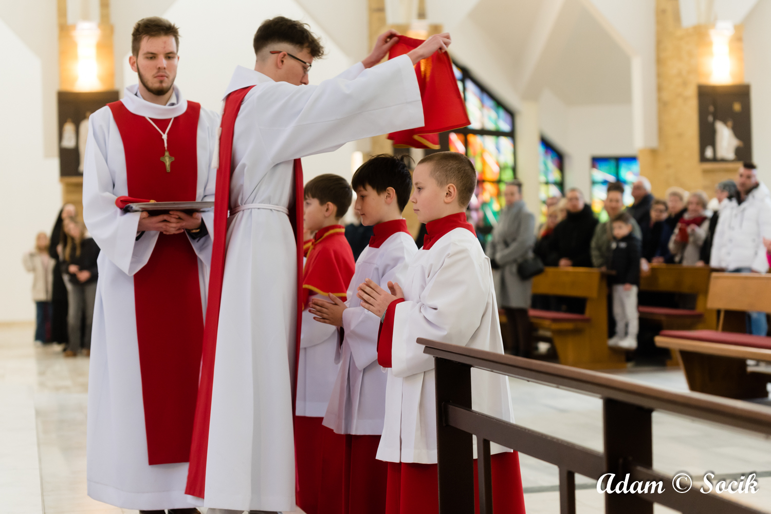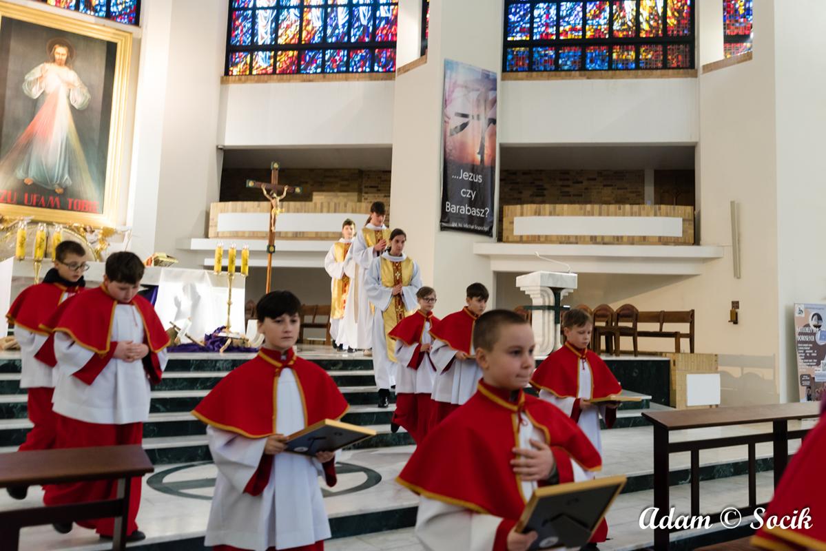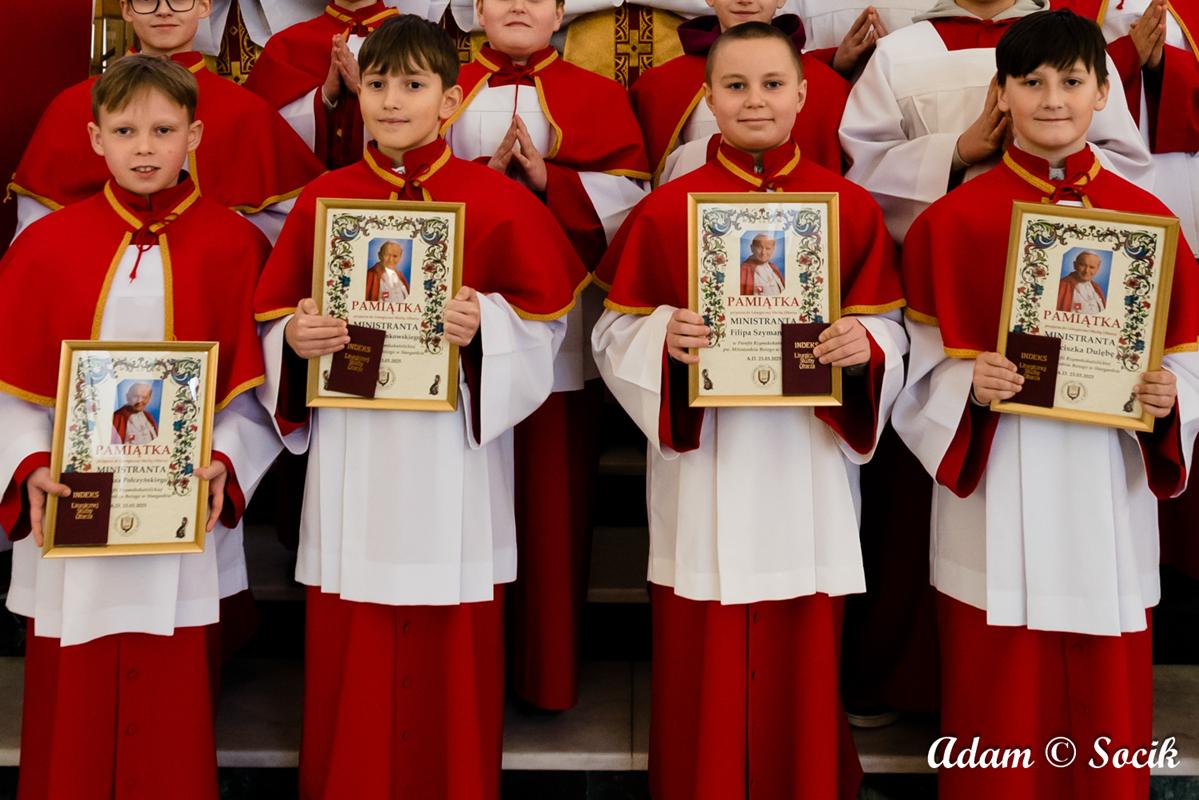 W trzecią niedzielę wielkopostną podczas uroczystej liturgii o godz. 11:00 z udziałem rodzin z dziećmi ksiądz Proboszcz włączył do Liturgicznej Służby Ołtarza czterech nowych ministrantów. Najmłodszymi we wspólnocie odtąd są: Franciszek Dulęba, Tomasz Połczyński, Adam Rzymkowski i Filip Szymaniak. Warto zaznaczyć, że Tomasz i Filip mają starszych braci we wspólnocie ministranckiej.