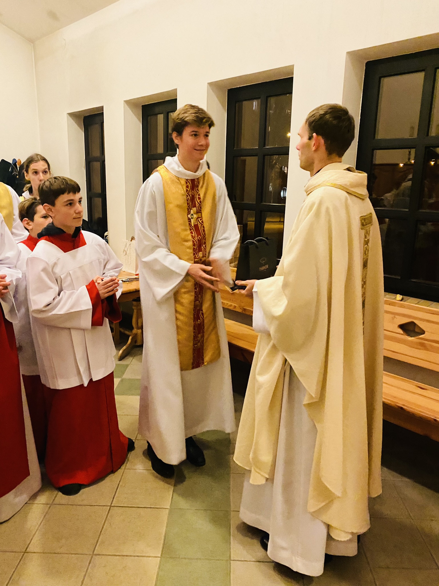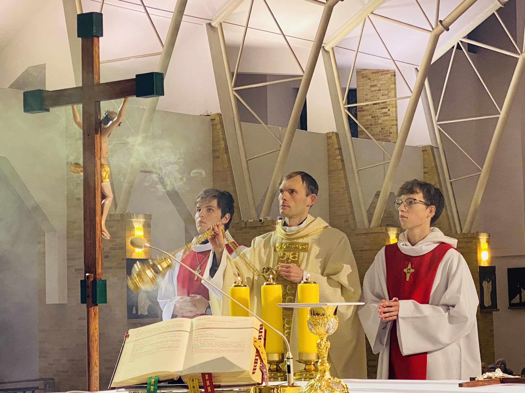 Wieczorem 28 listopada 2023 r. w naszej świątyni parafialnej Mszę świętą prymicyjną sprawował ks. mgr Krzysztof Dorau, jedyny neoprezbiter archidiecezji szczecińsko-kamieńskiej wyświęcony w Roku Pańskim 2023. Posługę manuduktora pełnił ks. Maciej a okolicznościowe Słowo Boże wygłosił ks. Proboszcz, w liturgii uczestniczył także br. Dariusz Seewald SChr. Na zakończenie Mszy św. ks. neoprezbiter udzielił prymicyjnego błogosławieństwa i zostawił na pamiątkę obrazek prymicyjny, który będzie wszystkim jeszcze wiele razy przypominał o pamięci modlitewnej za młodego kapłana. Piękne życzenia młodemu duszpasterzowi długo składali wdzięczni i wzruszeni parafianie.