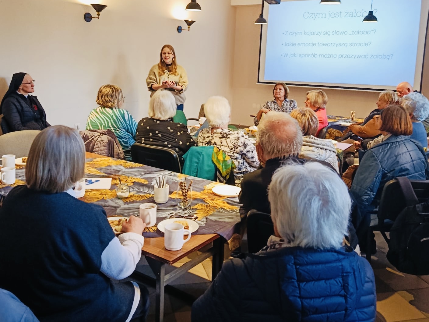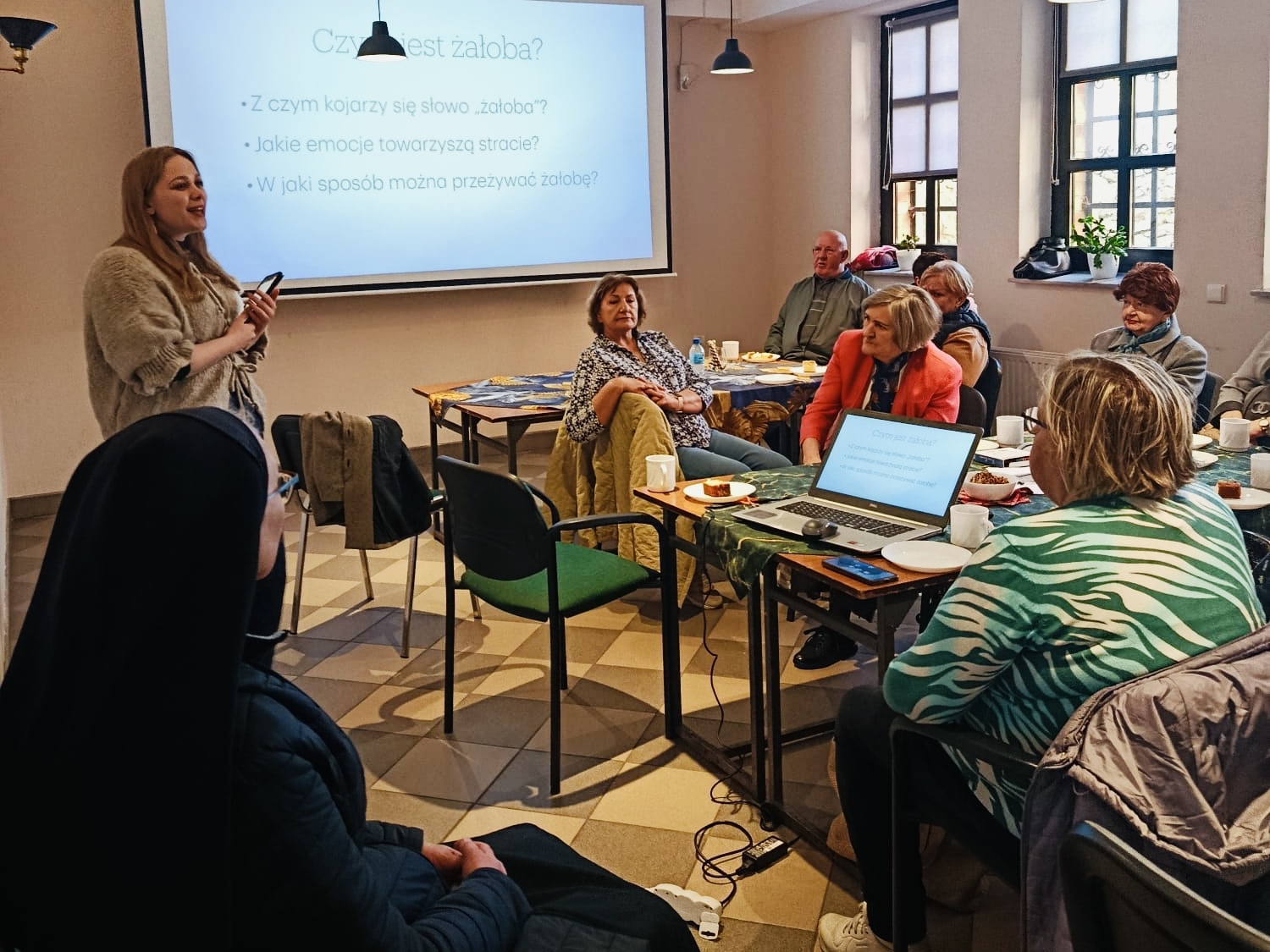 W ramach projektu Faustynka dla seniora, dofinansowanego przez Urząd Miasta Stargard, w czwartek 23 kwietnia 2026 r. w naszej parafialnej kawiarence odbyły się warsztaty psychologiczne pt. „Blisko mimo straty” poświęcone emocjom związanym z żałobą i samotnością. Warsztaty poprowadziła psycholog Alicja Rogozińska ze Szczecina.