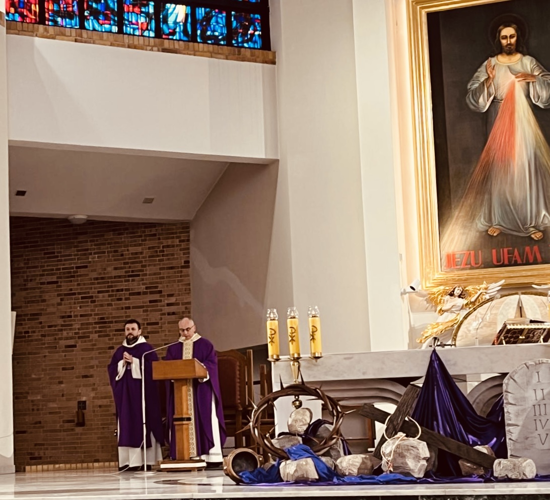 W piątek, 13 marca 2026 r. przed południem, odbył się stargardzki 𝗱𝘇𝗶𝗲𝗻́ 𝘀𝗸𝘂𝗽𝗶𝗲𝗻𝗶𝗮 𝗦𝘁𝗿𝗮𝘇̇𝘆 𝗛𝗼𝗻𝗼𝗿𝗼𝘄𝗲𝗷 𝗡𝗮𝗷𝘀́𝘄𝗶𝗲̨𝘁𝘀𝘇𝗲𝗴𝗼 𝗦𝗲𝗿𝗰𝗮 𝗣𝗮𝗻𝗮 𝗝𝗲𝘇𝘂𝘀𝗮. Tegoroczny program rozpoczęło nabożeństwo Drogi Krzyżowej przygotowanej przez ks. Emila a następnie Eucharystia, której przewodniczył ks. Proboszcz. Po Eucharystii konferencję ascetyczną wygłosił ks. Krzysztof. W uroczystości wzięli udział: honorowy poczet sztandarowy i przedstawiciele stargardzkich wspólnot parafialnych. Całość zakończyła słodka agapa w parafialnej kawiarence.