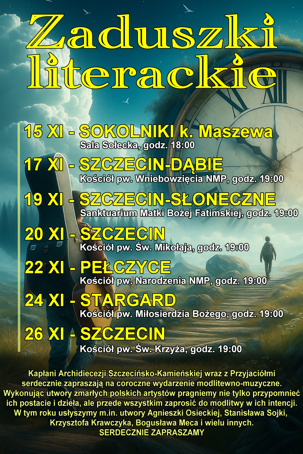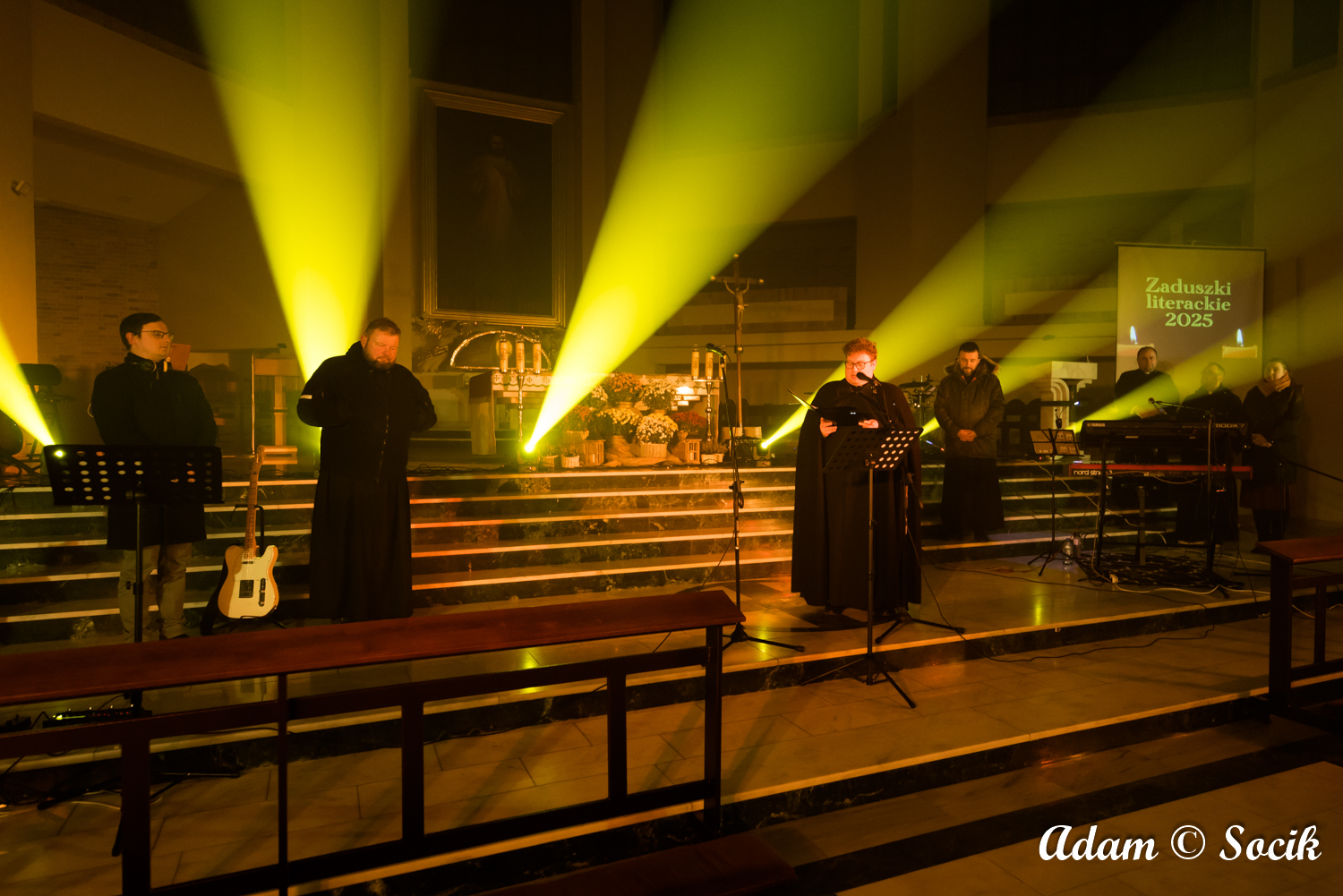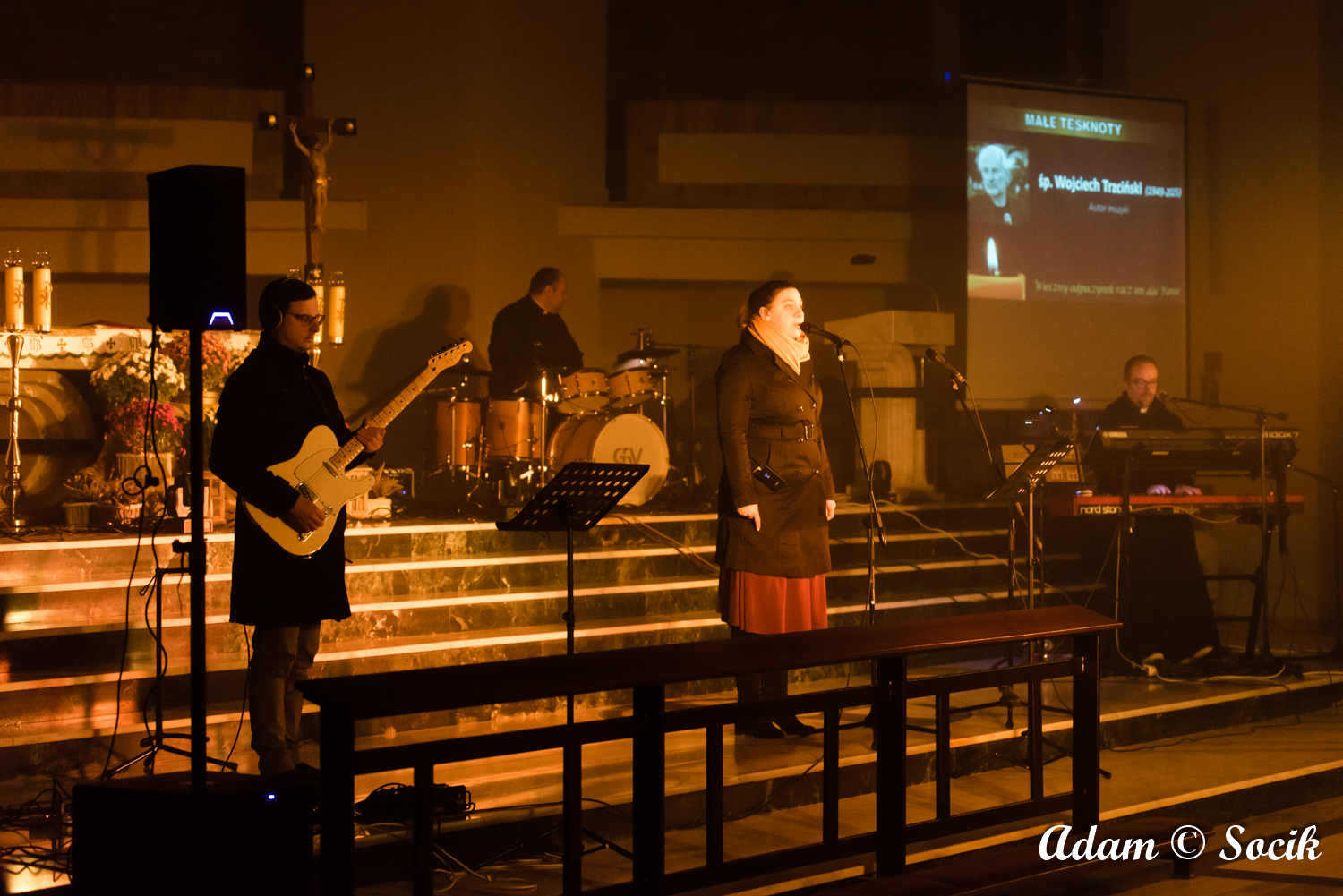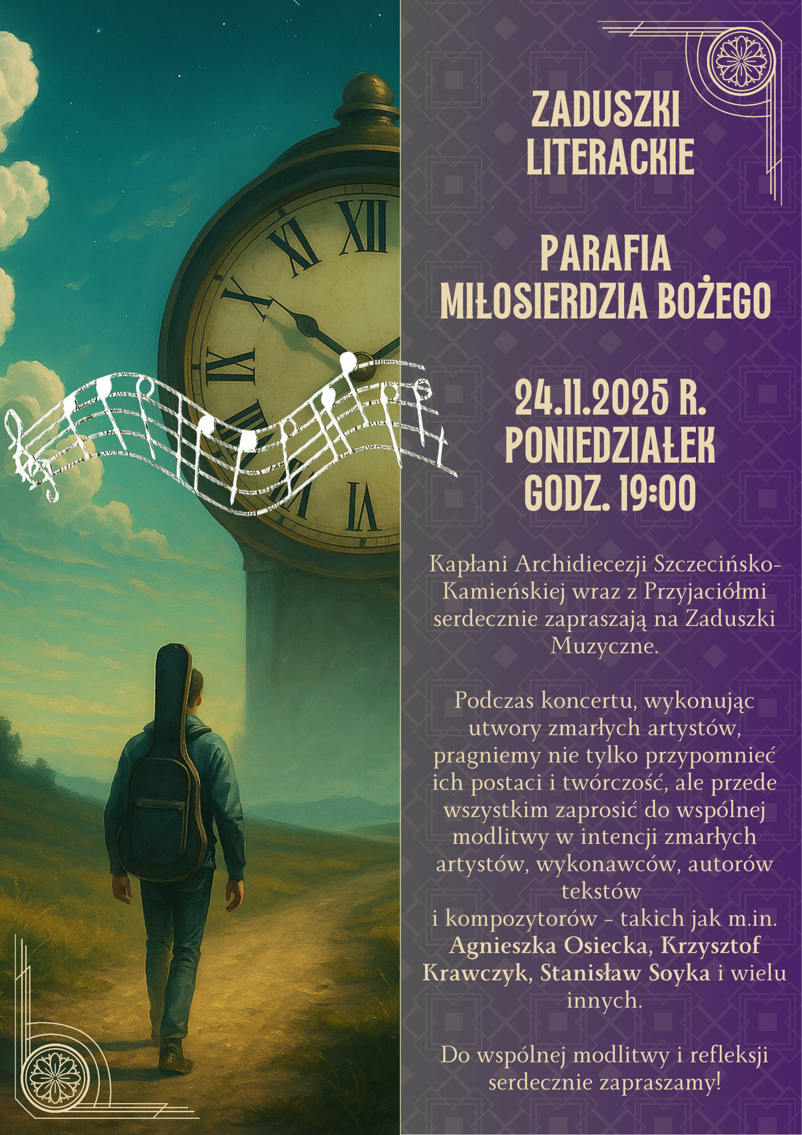 W poniedziałkowy chłodny wieczór 24 listopada 2025 roku w naszym kościele odbył się kolejny wyjątkowy koncert. Na scenie wystąpili szczecińsko-kamieńscy duszpasterze z przyjaciółmi, którzy wykonali najpiękniejsze polskie utwory zmarłych artystów. Wśród nich genialnie zaśpiewał nasz ks. Emil Piotrowicz, który po raz pierwszy uczestniczy w tegorocznym projekcie. Zgromadzona licznie publiczność wysłuchała m.in. utworów: Agnieszki Osieckiej, Stanisława Soyki, Krzysztofa Krawczyka, Bogusława Meca i innych. Koncert wpisał się w listopadowe wołanie Kościoła o radość zmartwychwstania dla zmarłych.